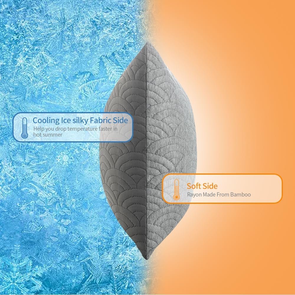 LUXURIOUS PILLOWCASE:One Side Of The Pillowcase is Comfortable Surface.And The Other Side Is Cool-fabric Surface(It is Made of Proprietary Ice Silky Fabric that Feels Cool to the touch).The Breathable Cover Keeps Your Pillows Dry and Provide Maximum Comfort. It makes you cool down during summer months and warm you up when its cold season.