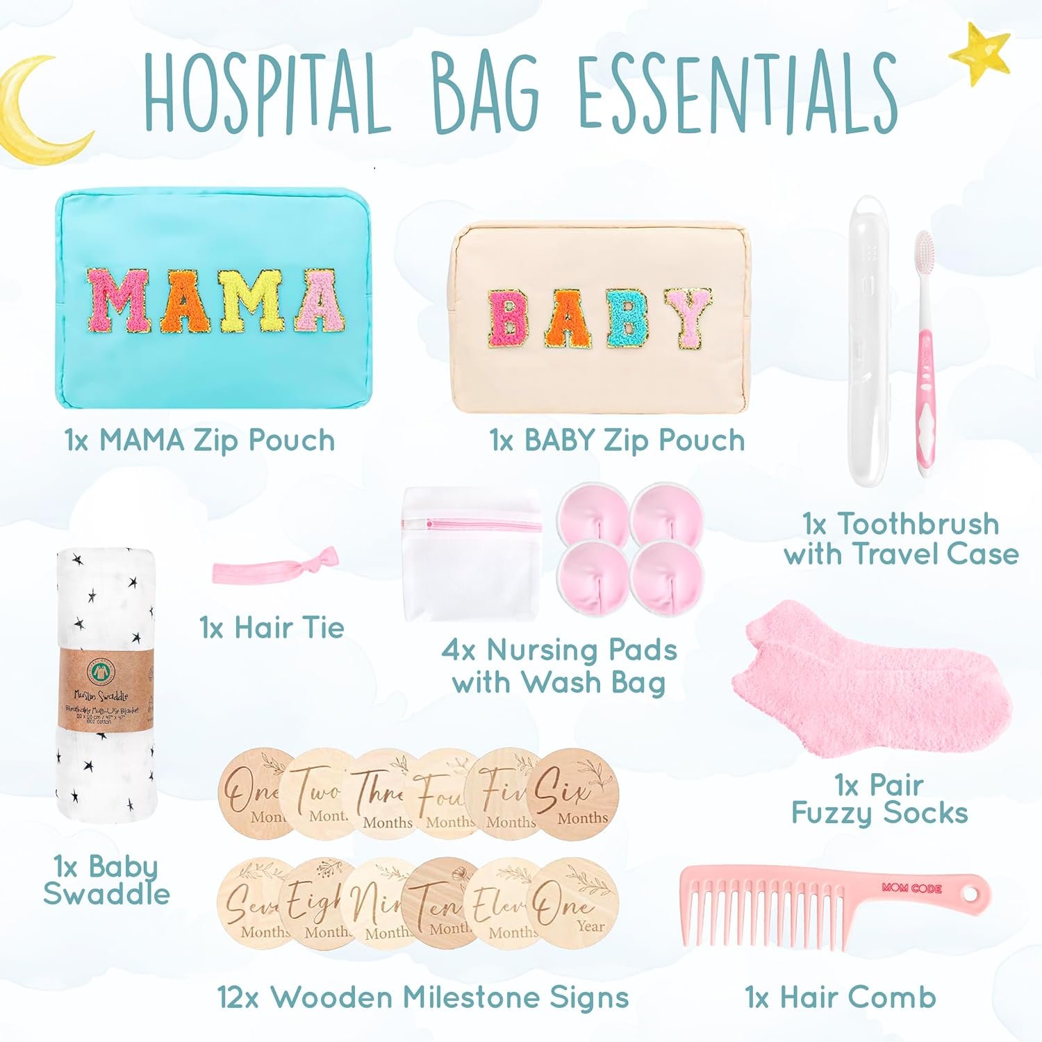 Mom and Baby Hospital Bag Essentials Set – Complete Postpartum Care Kit with Postpartum Essentials, Baby Essentials, and New Mom Gifts for Labor, Delivery, and Beyond