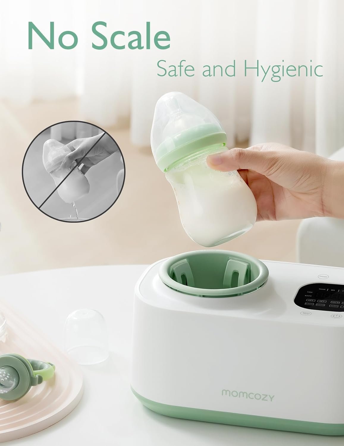 Waterless Warming: The three-dimensional air circulation warm milk design heats the bottle without the need for water, avoiding the problems of limescale, providing a clean environment for heating the baby bottle.