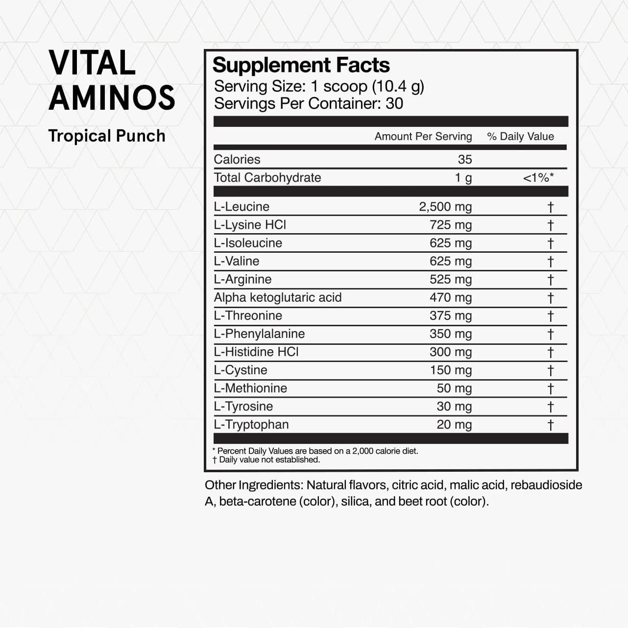 Momentous Vital Aminos contains an optimal blend of the 9 essential aminos acids along with 4 additional amino acids