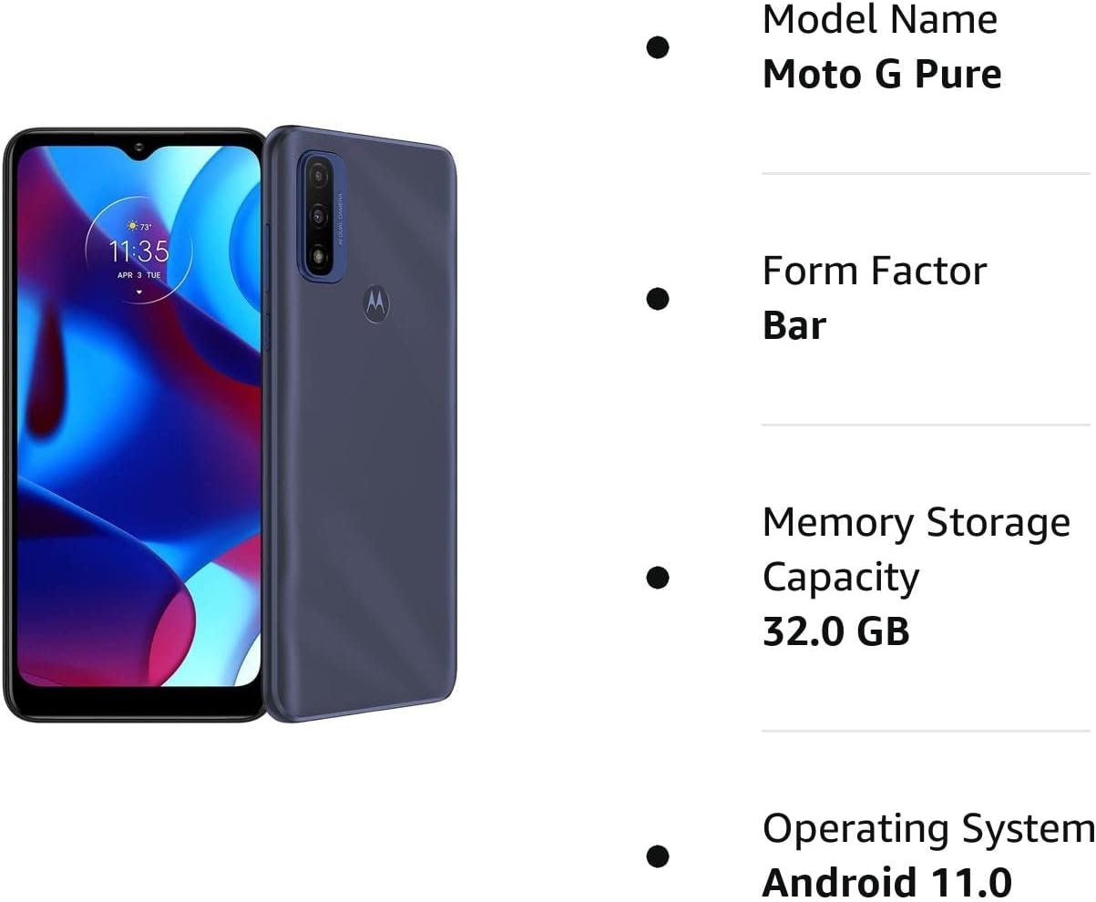 Moto G Pure | 2021 | 2-Day battery | Unlocked | Made for US by Motorola | 3/32GB | 13MP Camera | Deep Indigo (Renewed)