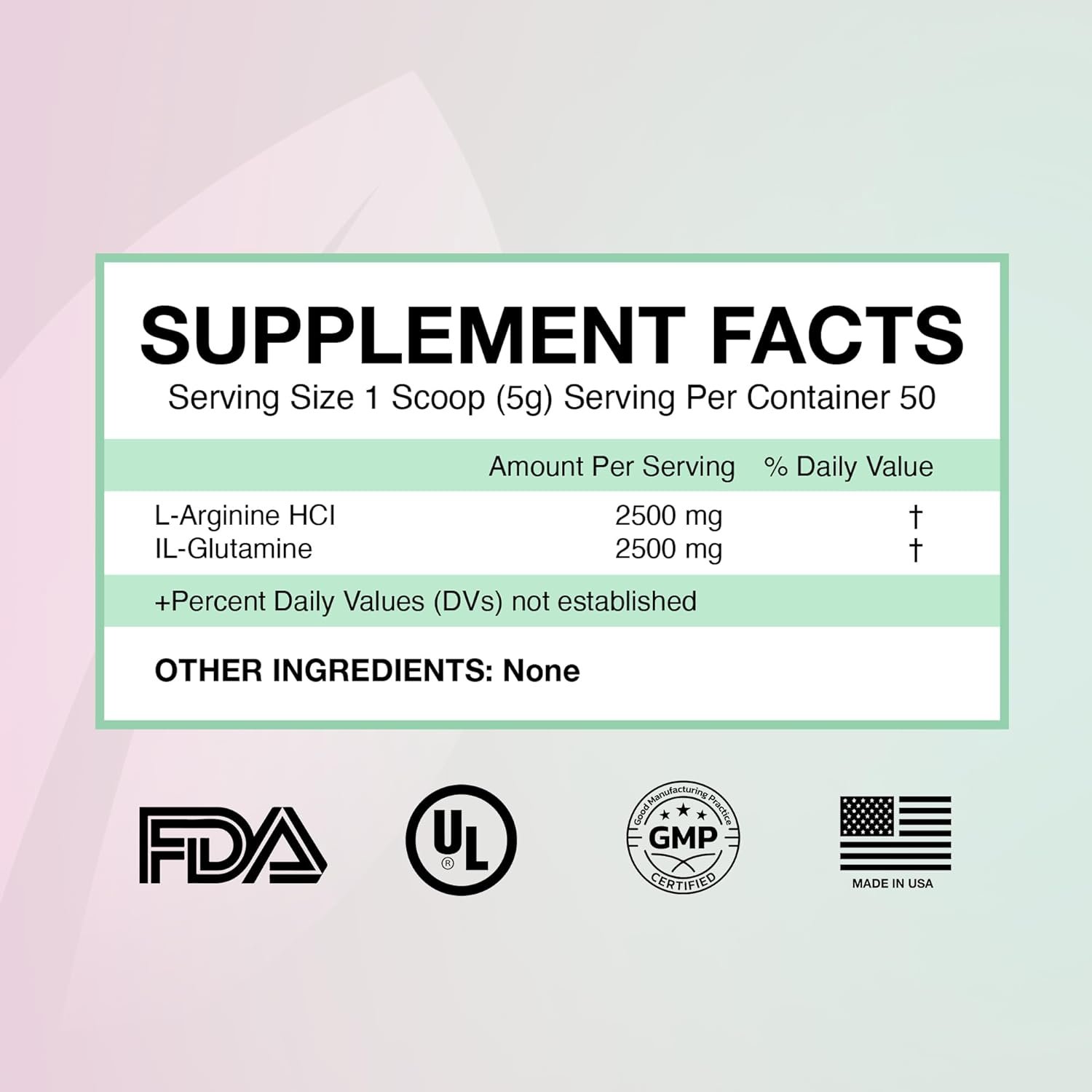 INGREDIENTS – L-glutamine and l-arginine hci