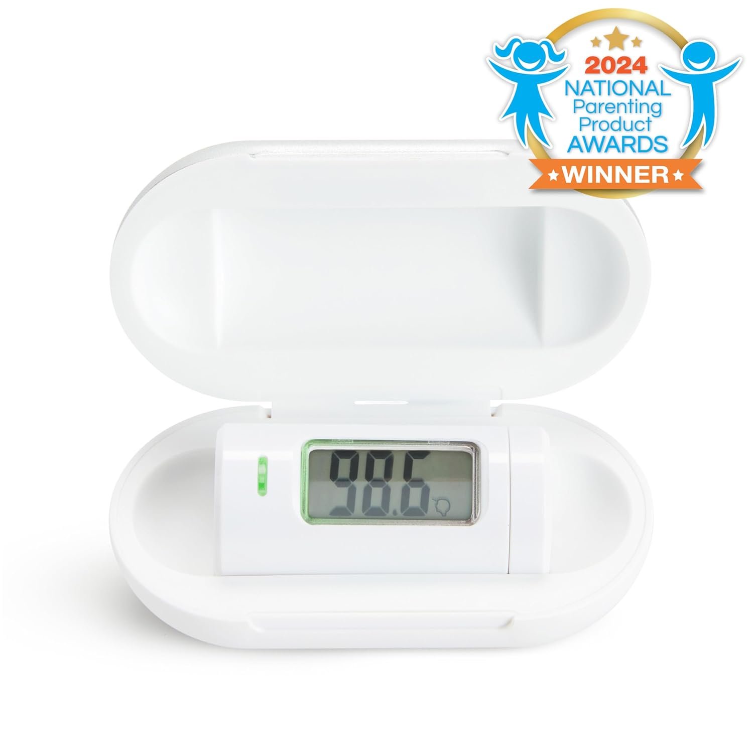 Tending to sick little ones is stressful enough; monitoring fevers shouldn’t be. The Munchkin Mini Thermometer uses no touch infrared technology to give you accurate results anytime–even while they sleep. Small enough to stash in a purse or diaper bag, this petite powerhouse ensures that temperature checks are always within reach, no matter where you are. A quick and easy scan delivers precise readings in one second flat. Simply place the sensor near your child’s forehead, press the side scan button, and wait for the beep. Green indicates a normal body temperature, red indicates a high or elevated range, and blue indicates low. With a travel-ready carrying case, this non-contact digital thermometer is a must-have for peace of mind when it matters most, at home and on the go.