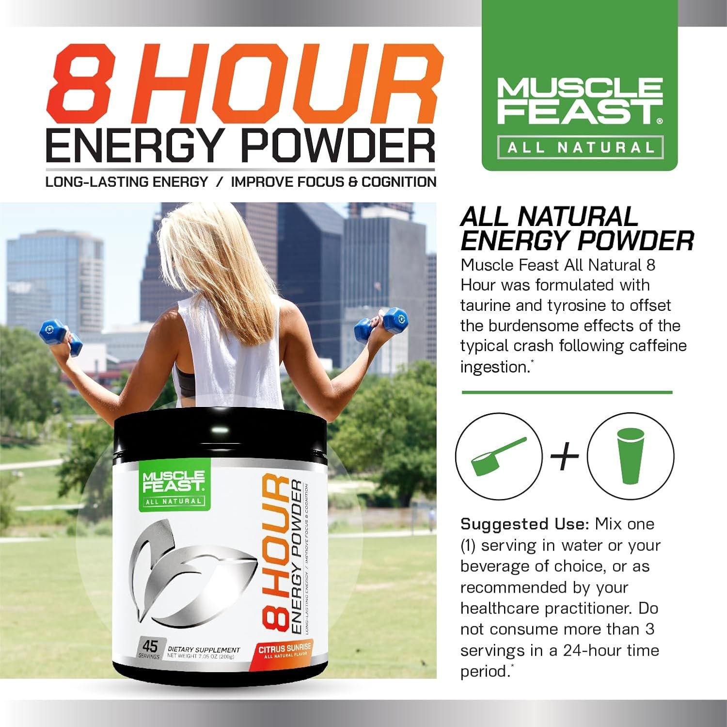NO CRASH: Pre-workout energy powder is formulated with Tyrosine and Taurine to prevent crashing