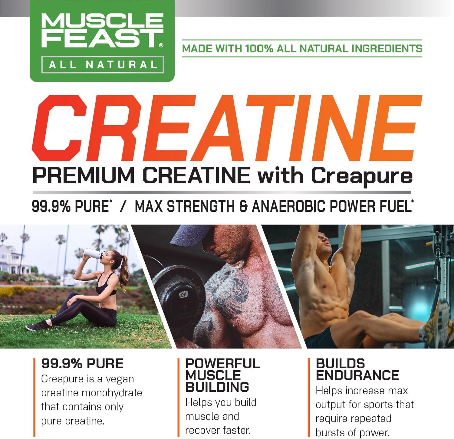 POWERFUL MUSCLE BUILDING: Creapure creatine monohydrate helps you build muscle and recover faster for more effective workouts and less soreness