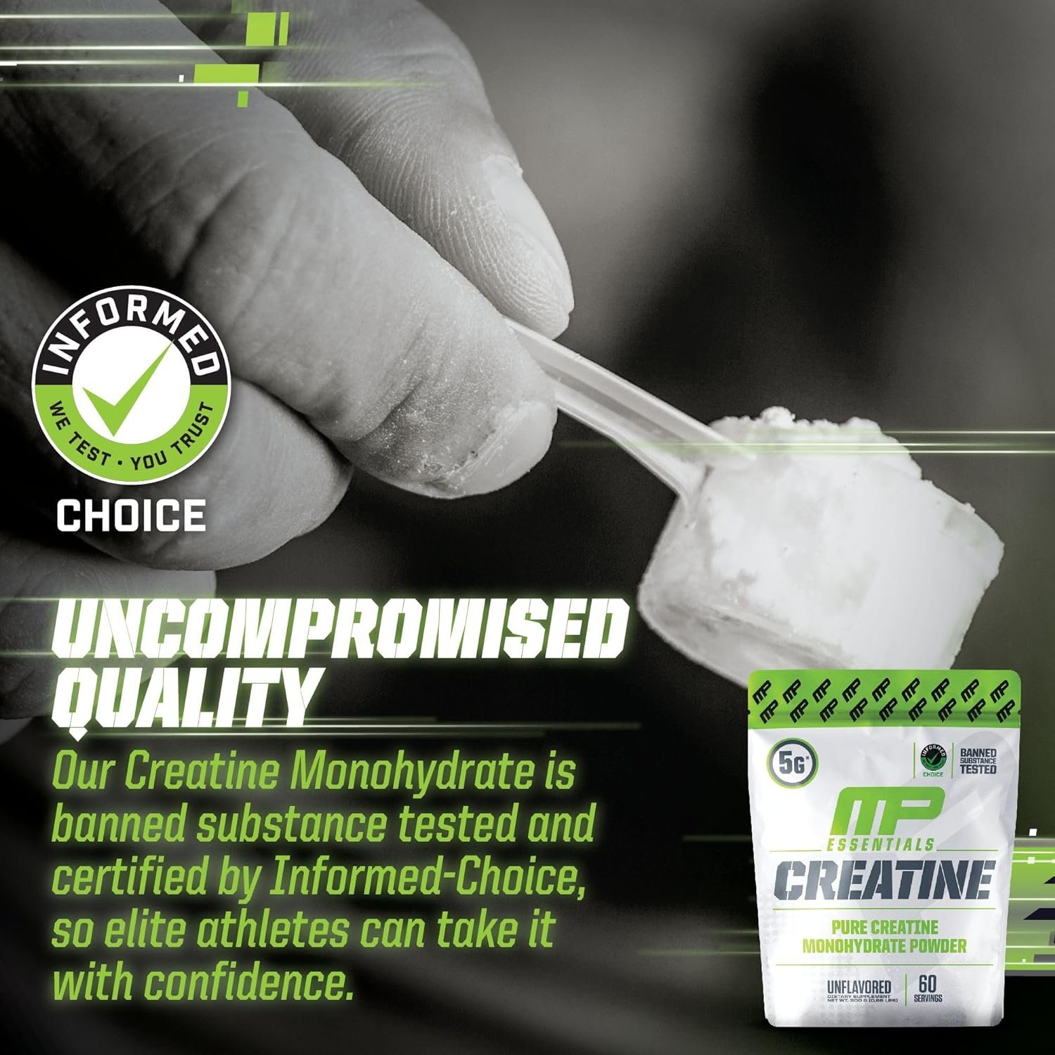 Crafted by Experts, Delivered with Excellence: Our Creatine Monohydrate Powder is tested for banned substances and certified by Informed-Choice, so elite athletes can take it with confidence.