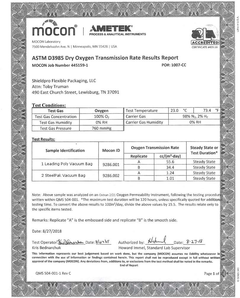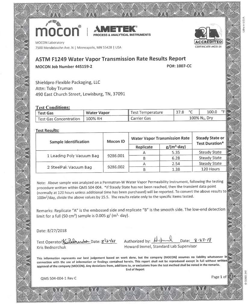 SCIENTIFICALLY PROVEN BETTER THAN PLASTIC/POLY VACUUM BAGS: Independent testing (see images on left) demonstrate our SteelPak 4 mil. Mylar bags are scientifically 4500% more effective at blocking oxygen penetration than all leading poly vacuum bags (Yes, even “that” brand!)