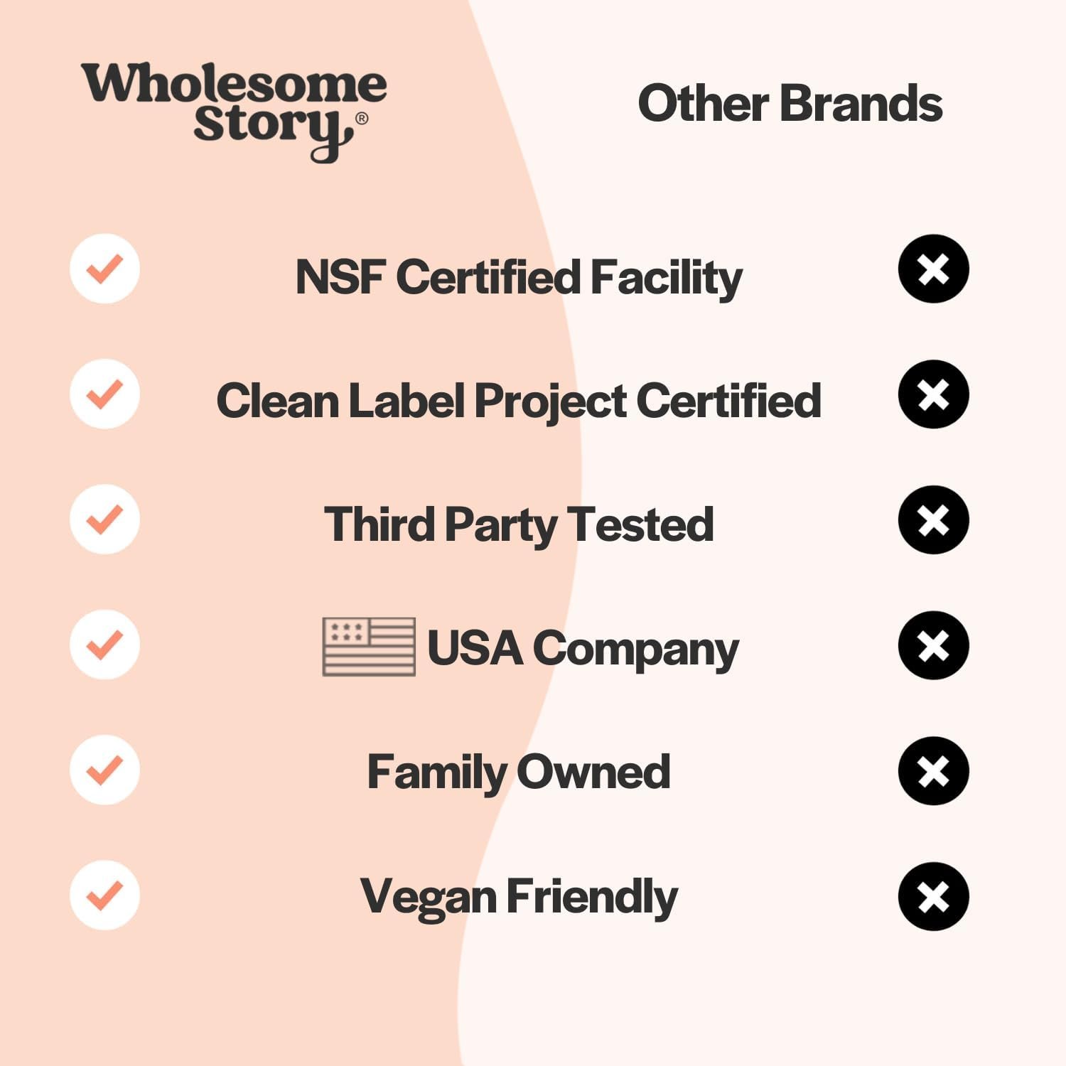 Wholesome Promise: Wholesome Story is family-owned and located in the Pacific Northwest of the USA. We are proud of the products we sell, but we also understand that our supplements may not work for everyone as each body and journey is unique. If it doesn’t work you, let us know and we promise to make it right.