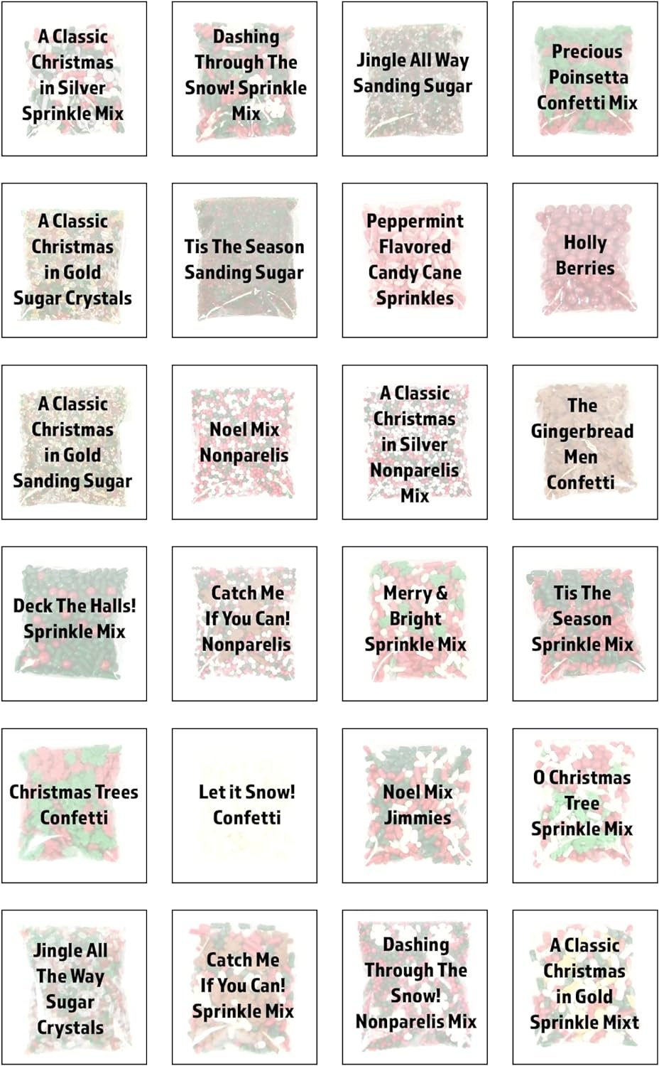 Delight young and old with the Mystic Sprinkles 24 Days of Sprinkles! Advent Calendar. Each Calendar measures 11″ x 8″ x 1″. Behind each door of this adorable calendar is one of 24 single servings of Holiday themed dessert toppings! Your recipient will receive 1.5 teaspoons (a generous serving and a half!) of toppings like: sprinkles, nonpareils, edible confetti, & sugars. Making every night leading up to Christmas just a little bit sweeter!