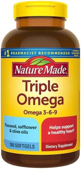 Nature Mades Triple Omega, 180 Softgels Bundle – No Artificial Flavors, Gluten Free – Fish Oil & Omega-3 Vitamins, Herbals & Dietary Supplements for Heart Health