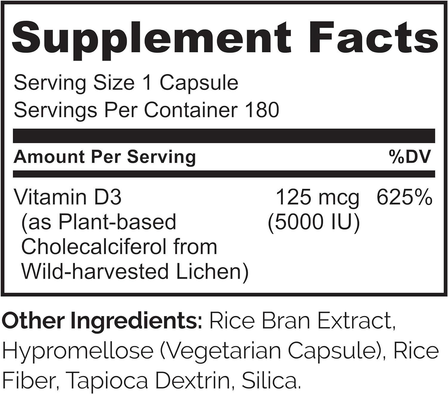 Plant-Based Vitamin D3: Most vitamin D3 supplements are made from lanolin secreted from sheep skin. Our Vegan Vitamin D3 is sustainably sourced from wild-harvested lichen with no animal byproducts of any kind.