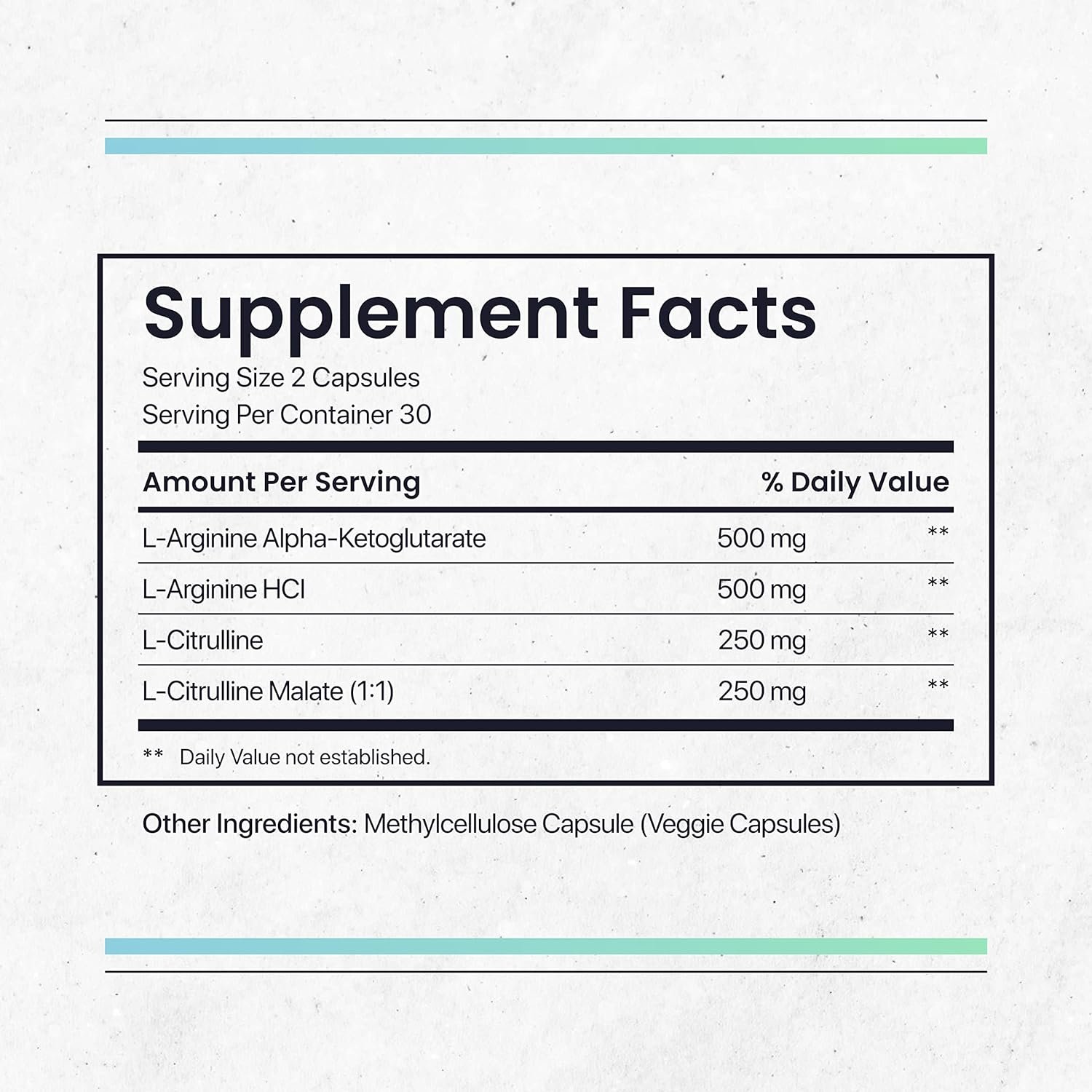 L-Arginine Alpha-Ketoglutarate, L-Arginine HCI, L-Citrculline, L-Citrulline Malate Organic Beets (Beta Vulgaris Root) Organic Arjuna Powder, Organic Shankhpushpi, CoQ10 (Coenzyme Q10) Vitamin D3, Organic Ashwagandha Root, Organic Fenugreek Seed, Dim (Diindolymethane), D-Aspartic Acid, Quercetin Dihydrate Organic Ashwagandha Root, Organic Bacopa Monnieri Extract, Gaba, L-Theanine