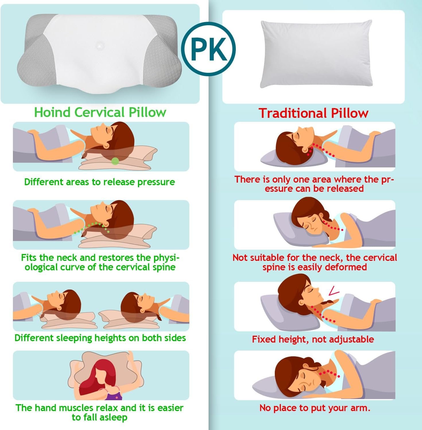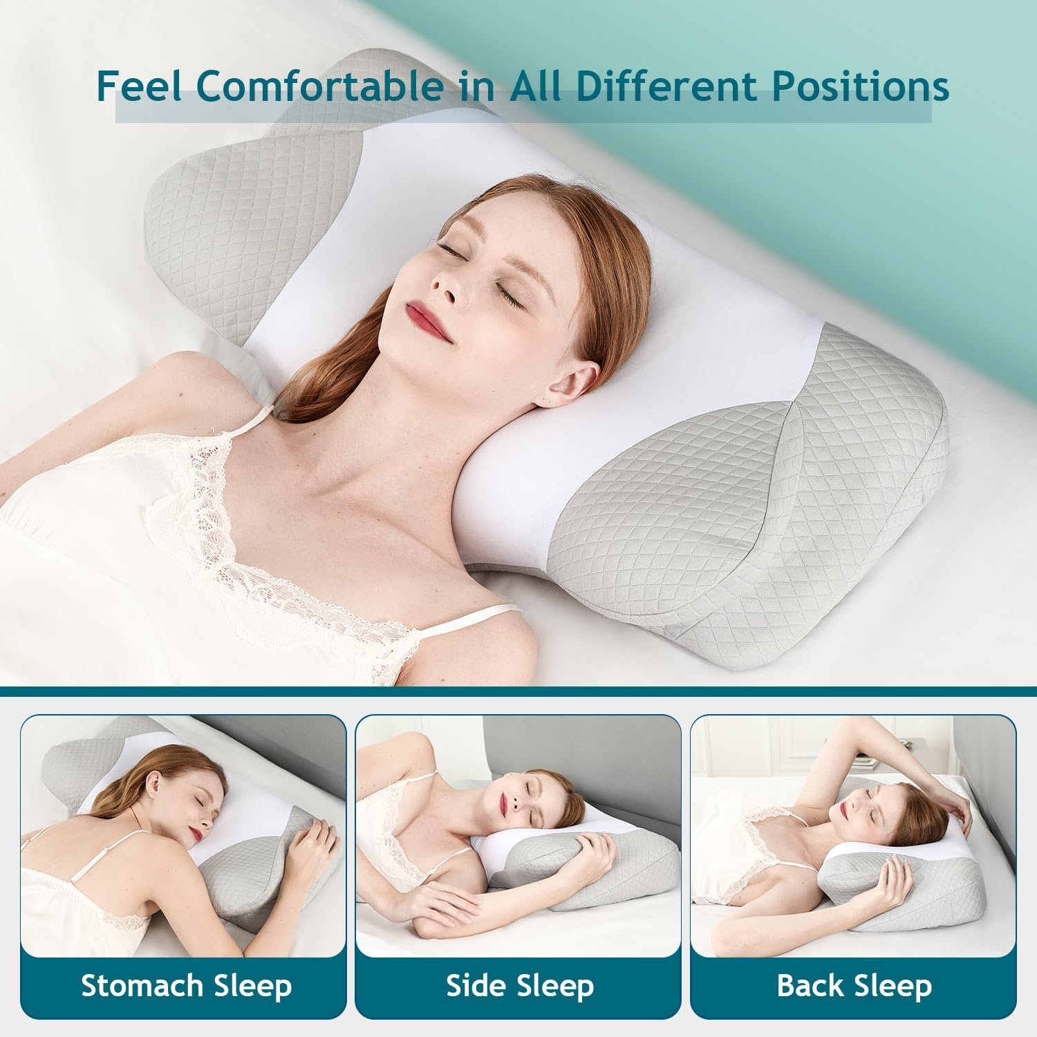 Neck Pillow, Cervical Neck Pillow for Pain Relief Sleeping, Orthopedic Contour Memory Foam Pillows with Cooling Pillow Covers, Adjustable Ergonomic Pillows for Side Back Stomach Sleeper, Center White