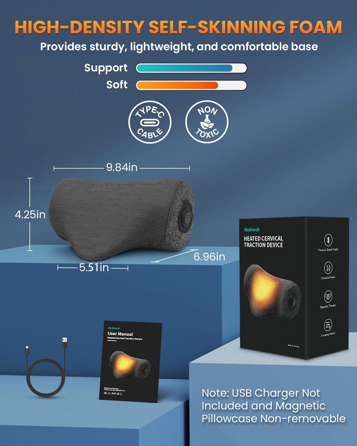 Attention & Support: The best gift for family, friends, drivers, gamers, and sports enthusiasts. Please don’t use this as an ordinary pillow all night long, 10 minutes per time, no more than 30 minutes a day. This portable neck pain pillows never cause pain. Usually you need 1-3 days to adapt to this traction pillow. Nekteck provides you with a one-year warranty and quality service. If you have any questions, please feel free to contact us.