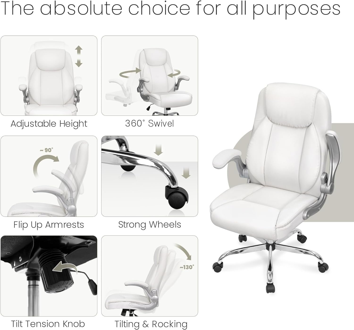 All-Day Comfort – Experience all-day comfort with thick cushioning and a wide seat. A curved backrest, padded headrest, and armrests provide extra support.
