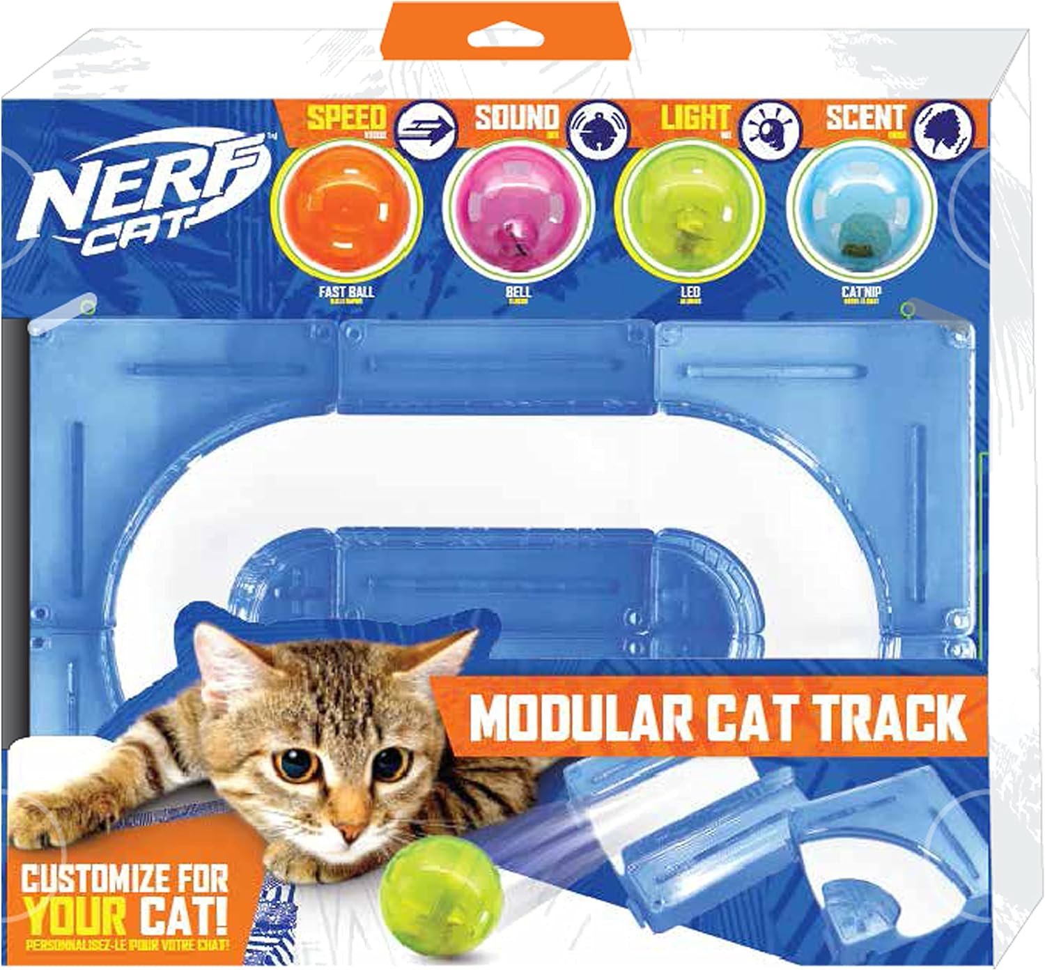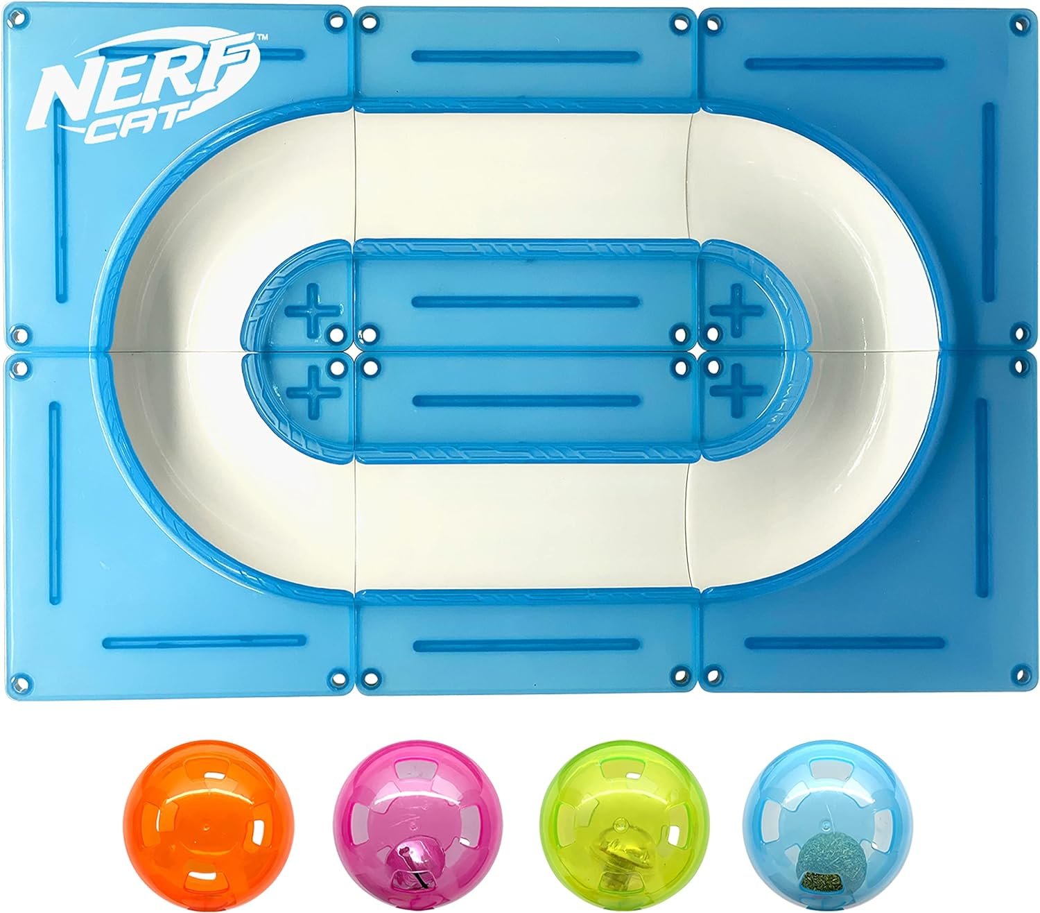 Nerf Dog GIFT SET BOX – 15in x 10in ABS Turbo Cat Track with 2in Hollow Ball and 2in Bell Ball and 2in LED Ball and 2in Catnip Ball