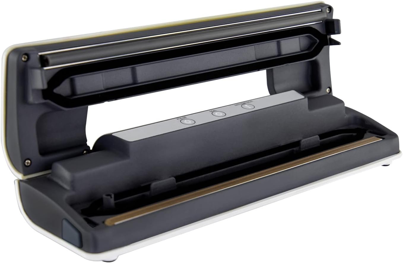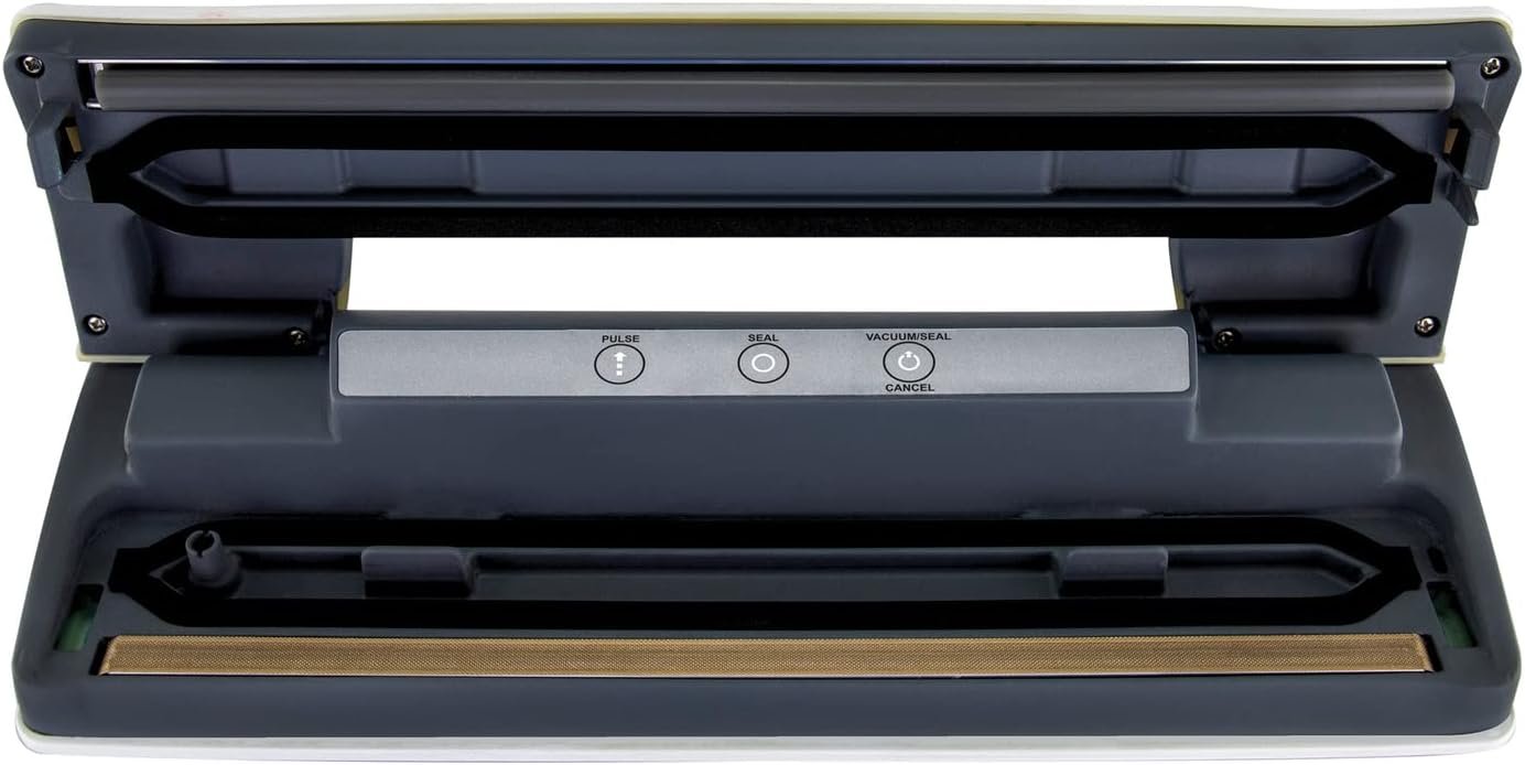 Prepare whole meals in advance and seal for later with the NESCO Classic Vacuum Sealer. Vacuum sealing helps keep foods fresh up to 5x longer than traditional storage methods. This easy-to-use vacuum sealer is fully automatic with 1-touch operation and auto shutoff. The control panel illuminates when the sealer is in use, and functions include vacuum and seal, seal only, pulse mode, and cancel. Pulse mode allows you to control the suction, helping prevent over-vacuuming and crushing of delicate foods. This sealer can accommodate up to an 11.8-in. wide bag, providing the versatility for a wide range of sealing jobs and is compatible with most brands of vacuum sealer bags and rolls. 10 quart-sized bags are included to get you started. Save money in the kitchen by reducing food waste and trips to the grocery store. Preserve fresh foods longer with the NESCO Classic Vacuum Sealer.