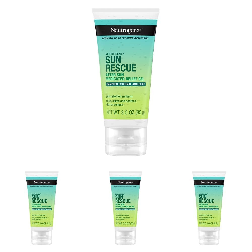 Neutrogena Sun Rescue After Sun Medicated Relief Gel with 0.45% Camphor External Analgesic for Cooling & Soothing, Painful Sunburn & Itch Relief, Fragrance-Free 3 Oz (Pack of 4)