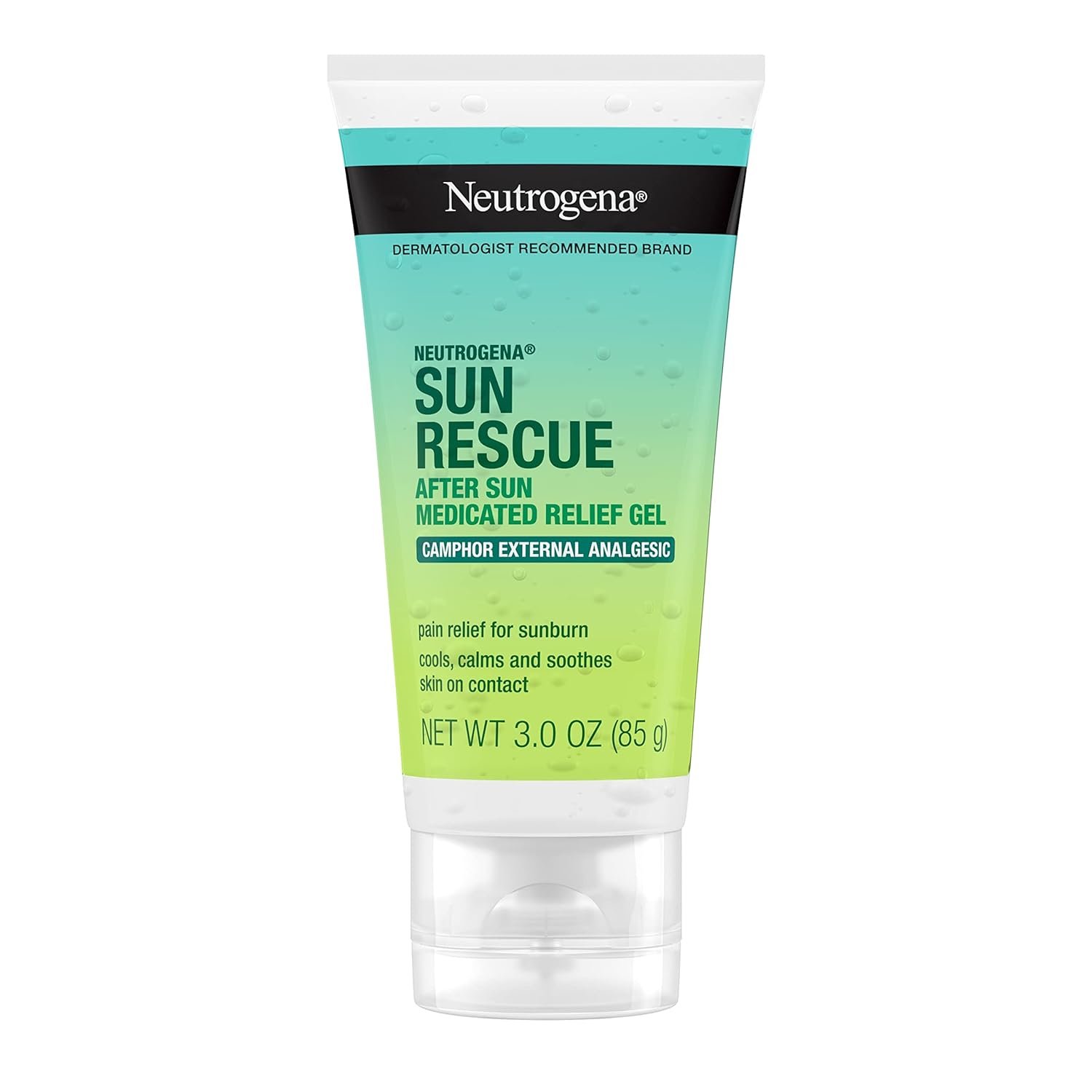 3-ounces of Neutrogena Sun Rescue Medicated After Sun Relief Gel with 0.45% camphor, works to cool and relieve painful sunburns, and stops the urge to scratch