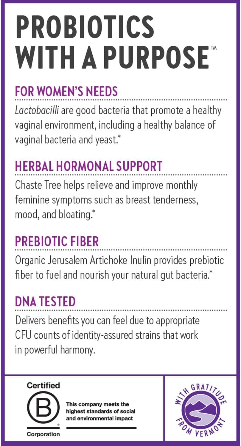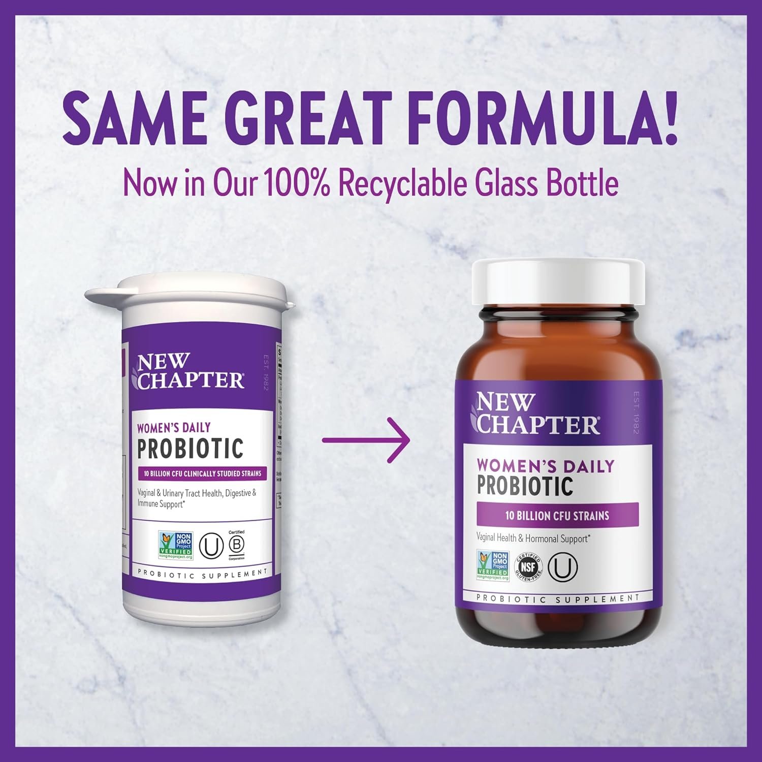 New Chapter Women’s Daily Probiotic is expertly tailored to support women’s needs including a healthy vaginal ecosystem and healthy hormone balance.* This is a new chapter in women’s probiotics, unlocking wellness with the right strains in the right amounts for the benefits you deserve. Our complete 3-in-1 formula delivers 10 billion CFU live probiotics to replenish a healthy vaginal ecosystem and pH, prebiotics as fuel for your natural gut bacteria, and Chaste Tree extract to help relieve and improve monthly feminine symptoms.* You can count on these probiotics for women to be DNA-tested to assure quality and identity and give you the exact, researched strains every time. * These statements have not been evaluated by the Food and Drug Administration. This product is not intended to diagnose, treat, cure, or prevent any disease.