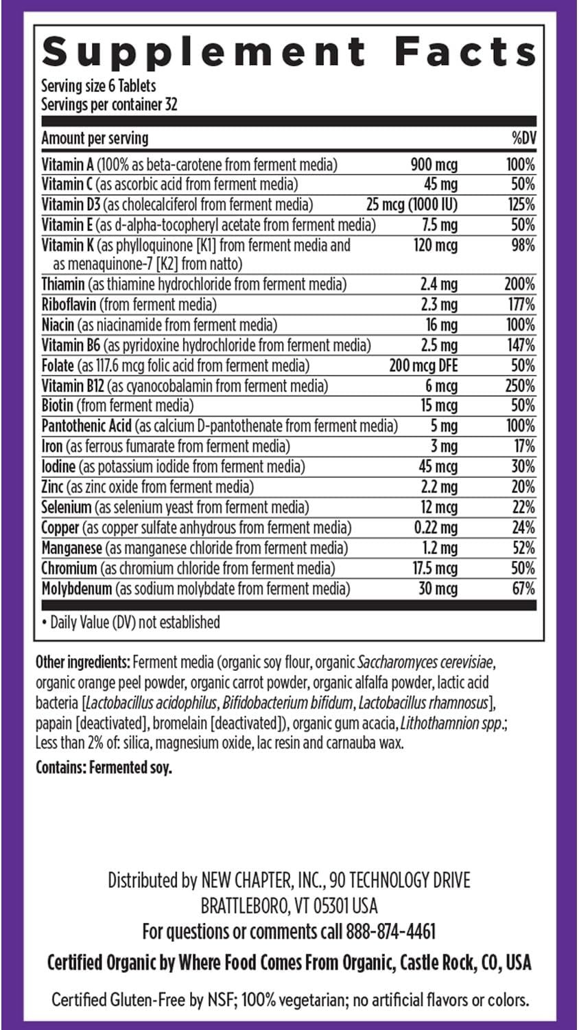 Tiny Tabs™ Multivitamin is expertly formulated with essential whole-food fermented vitamins and minerals that maximize your nutrient intake and promote foundational wellness.*New Chapter Tiny Tabs deliver broad nutritional support and promote vitality with 20+ essential nutrients. Crafted for heart, brain, bone, immune & vision support, stress, energy & digestive support, and healthy hair, skin & nails.* Tiny Tabs Multivitamin is made without herbs and spices and packed into miniature tablets designed specifically for those who have difficulty swallowing tablets. Gentle even on an empty stomach! *These statements have not been evaluated by the Food and Drug Administration. This product is not intended to diagnose, treat, cure, or prevent any disease.