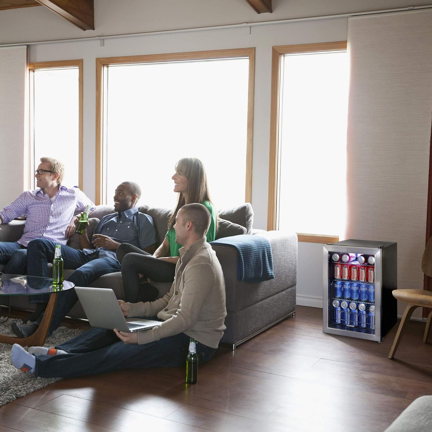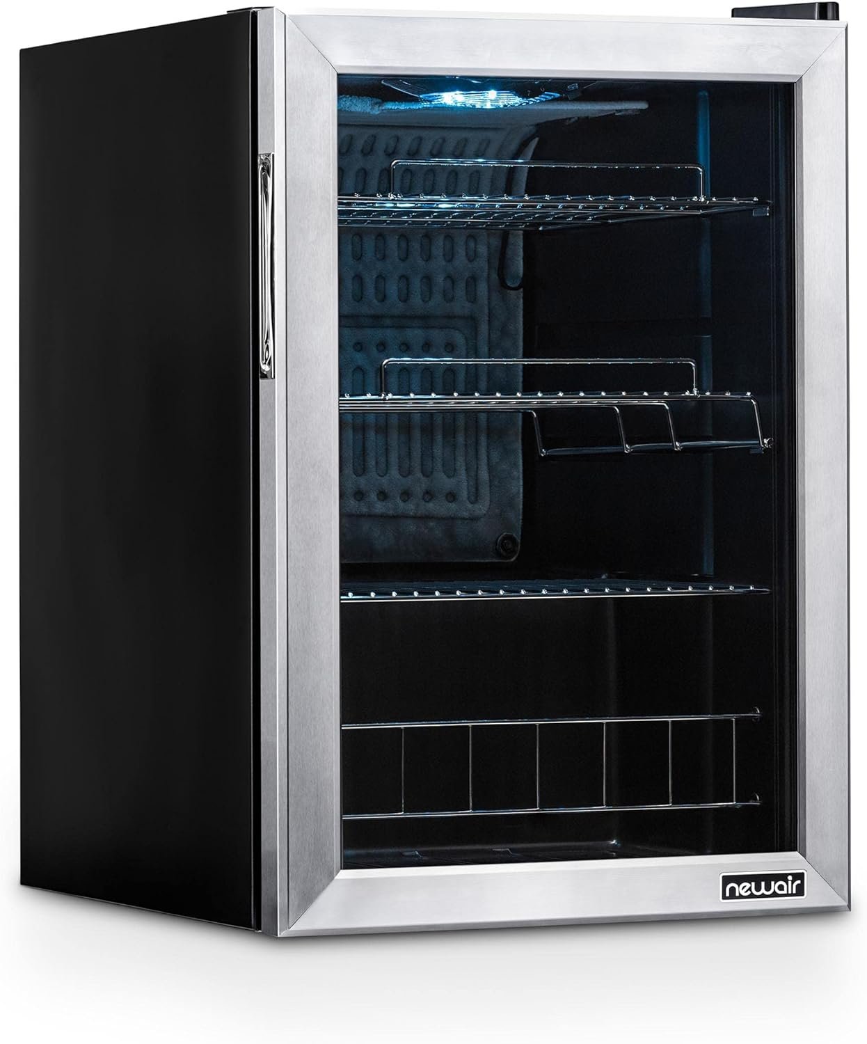 Keep all your favorite beverages perfectly chilled and ready to serve in the Newair 90 Can Compact Beverage Fridge. The freestanding design is ready to use out of the box, and adjustable shelves let you create customized storage for different sized cans and bottles.
