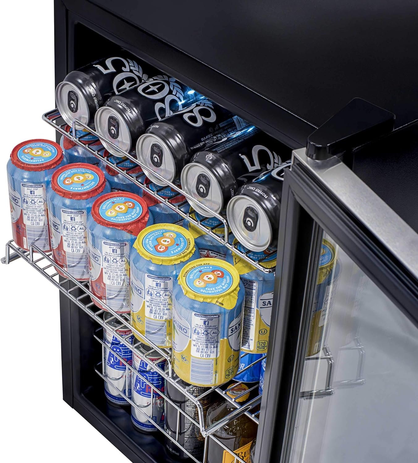 Double-paned glass doors provide outstanding insulation to keep all that cold air inside. They also provide on-trend good looks and an easy way to find exactly the right beverage when company calls..