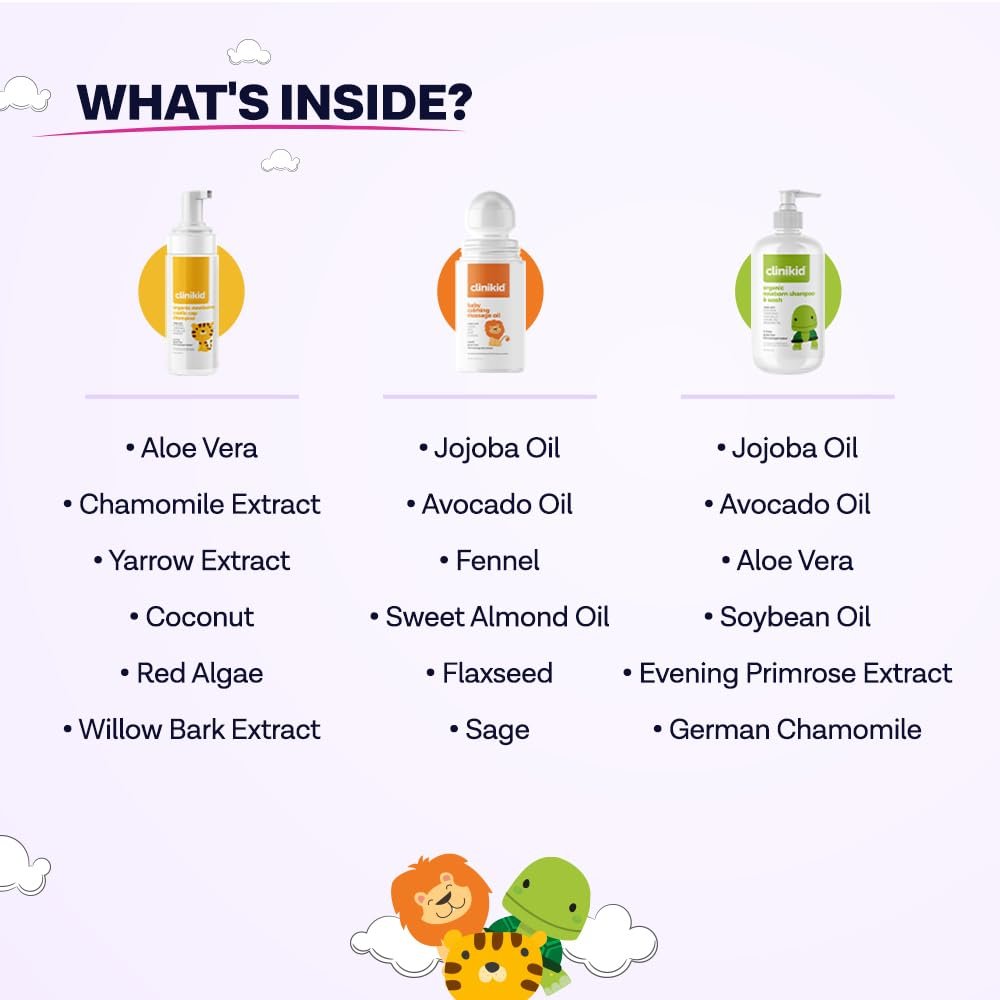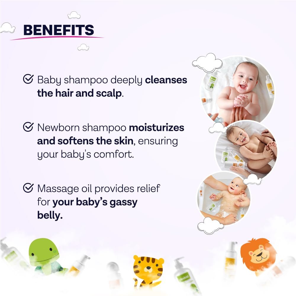 3- piece Clinikid Newborn Baby Kit, which brings together newborn shampoo, cradle cap foam, and soothing massage oil, is prepared with natural ingredients. It is formulated for the skin and hair health of newborn babies.