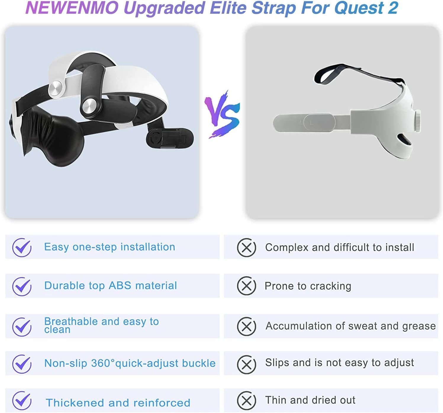 NEWENMO Adjustable Head Strap for Meta/Oculus Quest 2 Enhanced Support and Comfort, Upgraded Head Strap Reduce Head Pressure, Protective Head Strap for Quest 2 Accessories in VR