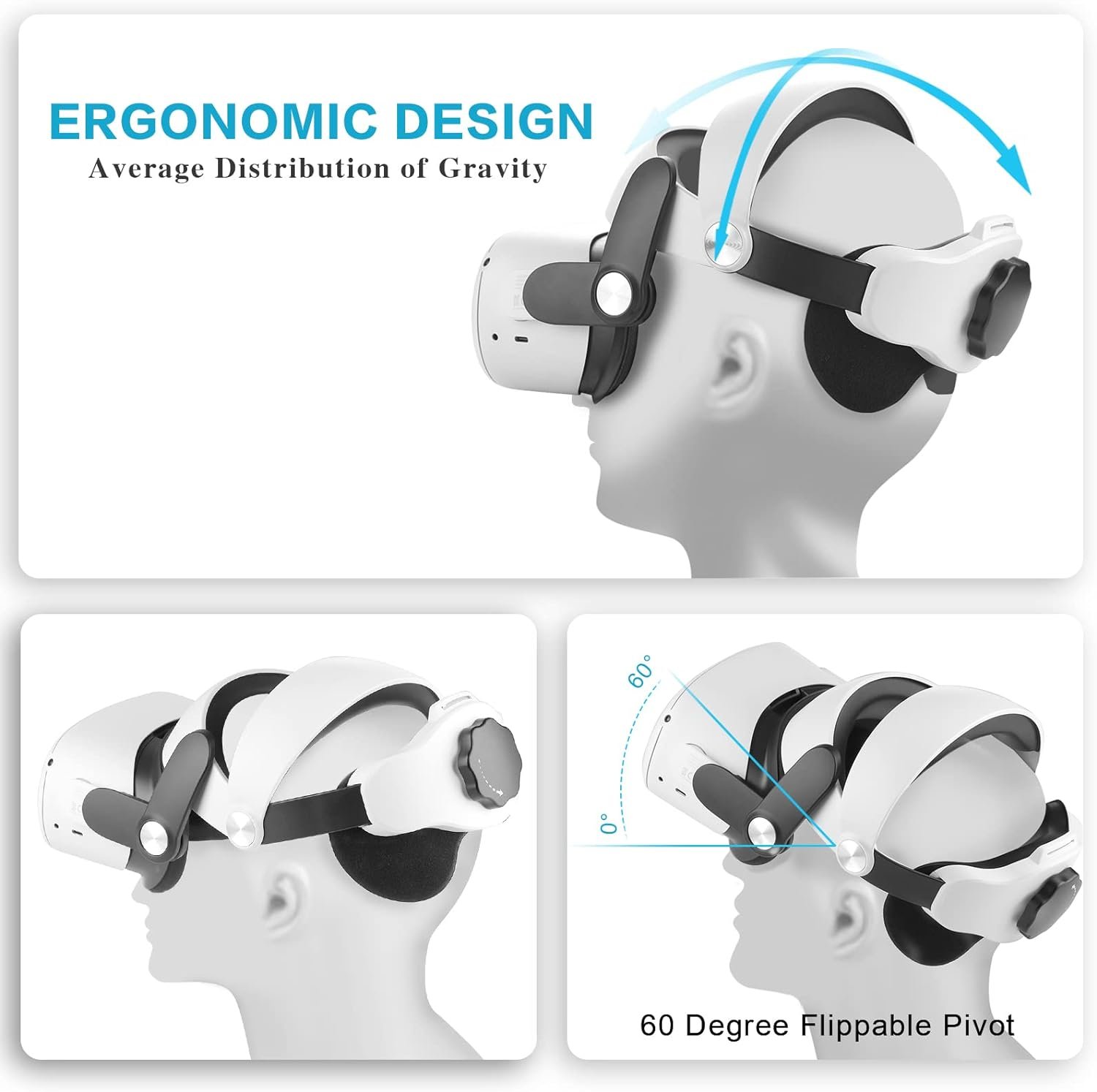 【Easy&Comfortable to Wear】: The design of our head strap for quest 2 is adopted upgraded ergonomic design,which means the gravity of the whole machine is evenly distributed, making it easier and more comfortable to wear.