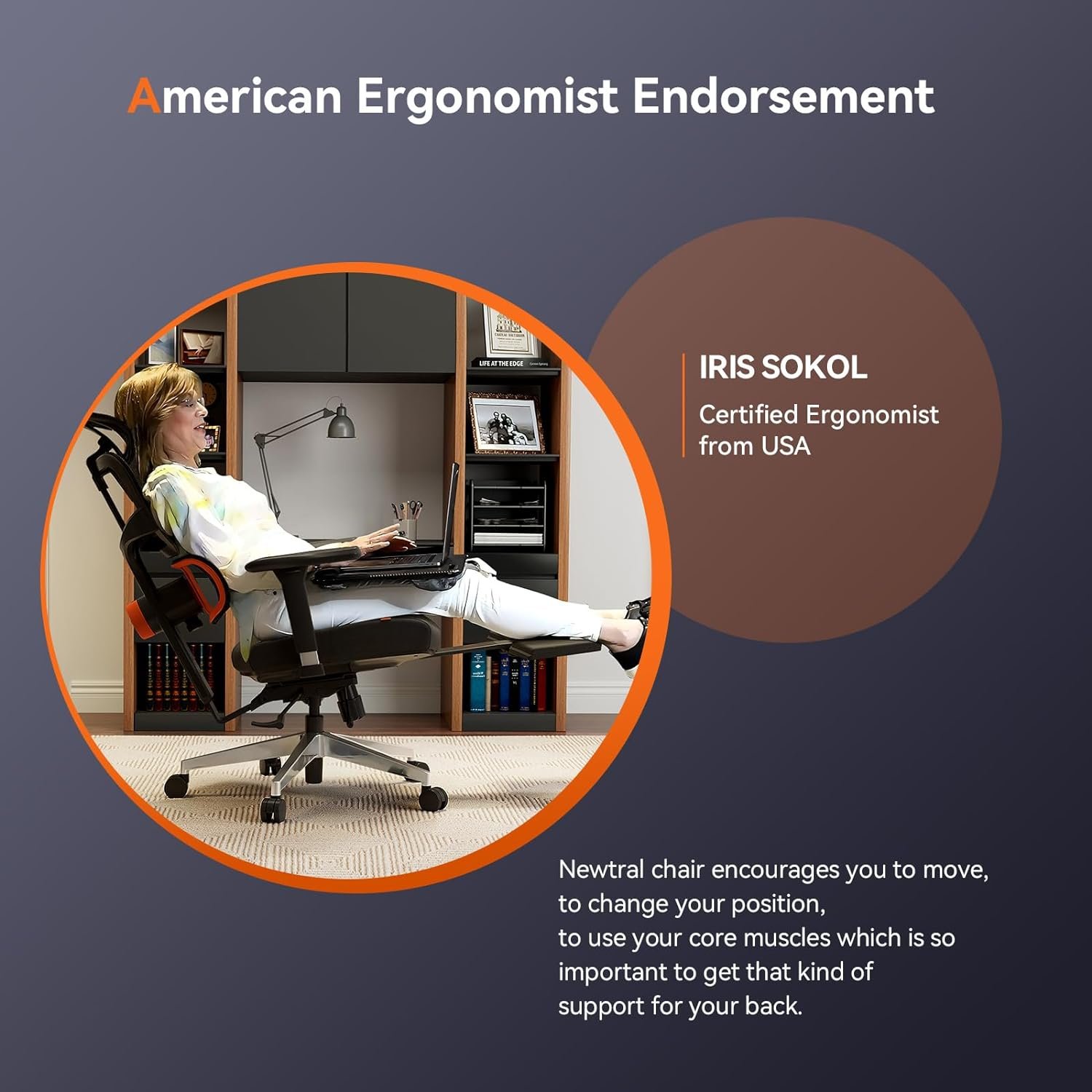 【Innovative Adaptive Lumbar Support】Newtral Office Chair with Lumbar Support has an auto chasing mechanism, which automatically follows the movement of the lower back, providing strong lumbar support throughout the day. The intensity of the lumbar support can be adjusted to meet individual needs, it fits the natural curvature of your spine and can help relieves back pain
