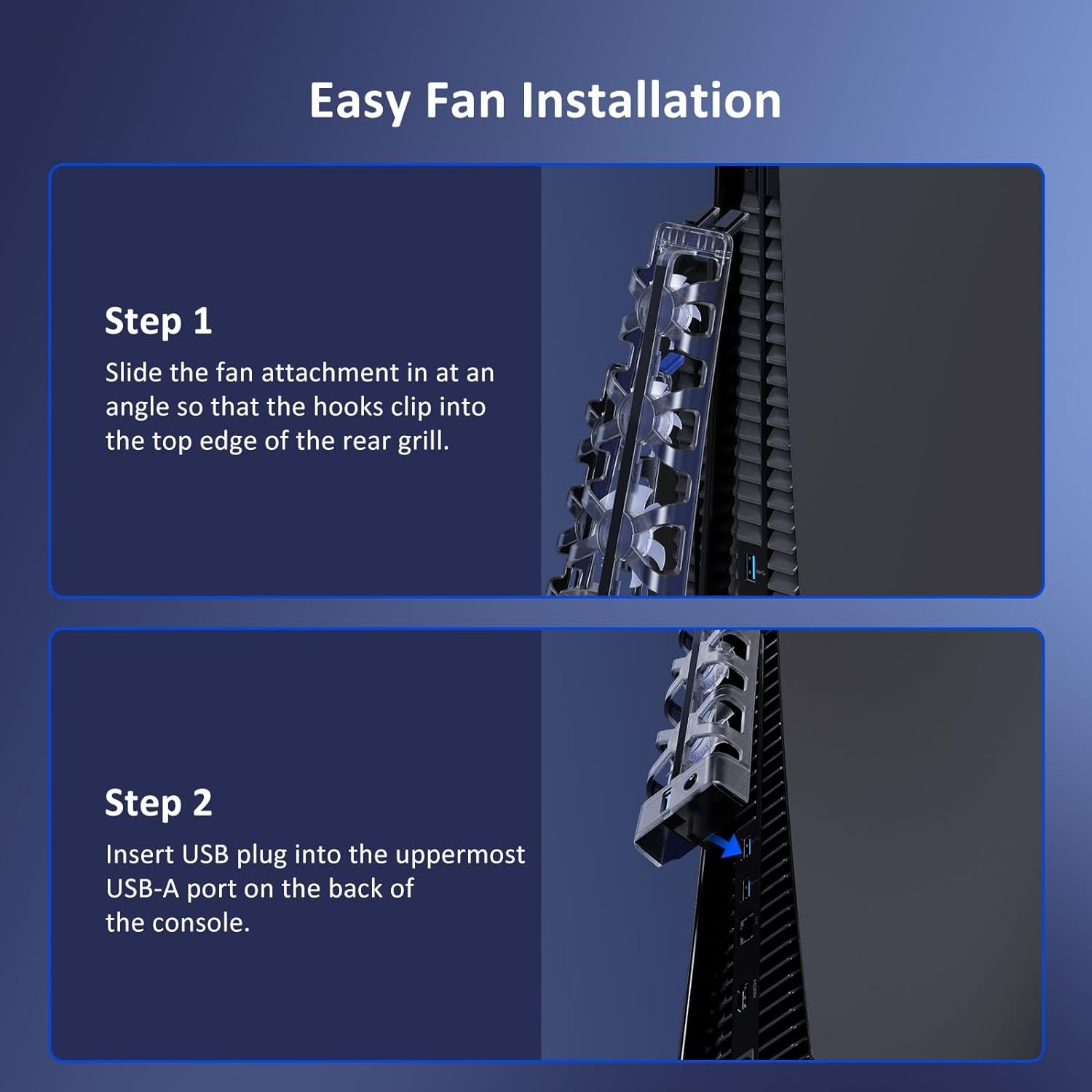 【Efficient Cooling System】The fan attachment quickly dissipates excess heat created by the PlayStation 5, greatly improving the console’s lifespan and performance. When you’re done playing, the fans automatically turn off with your console so no energy is wasted.