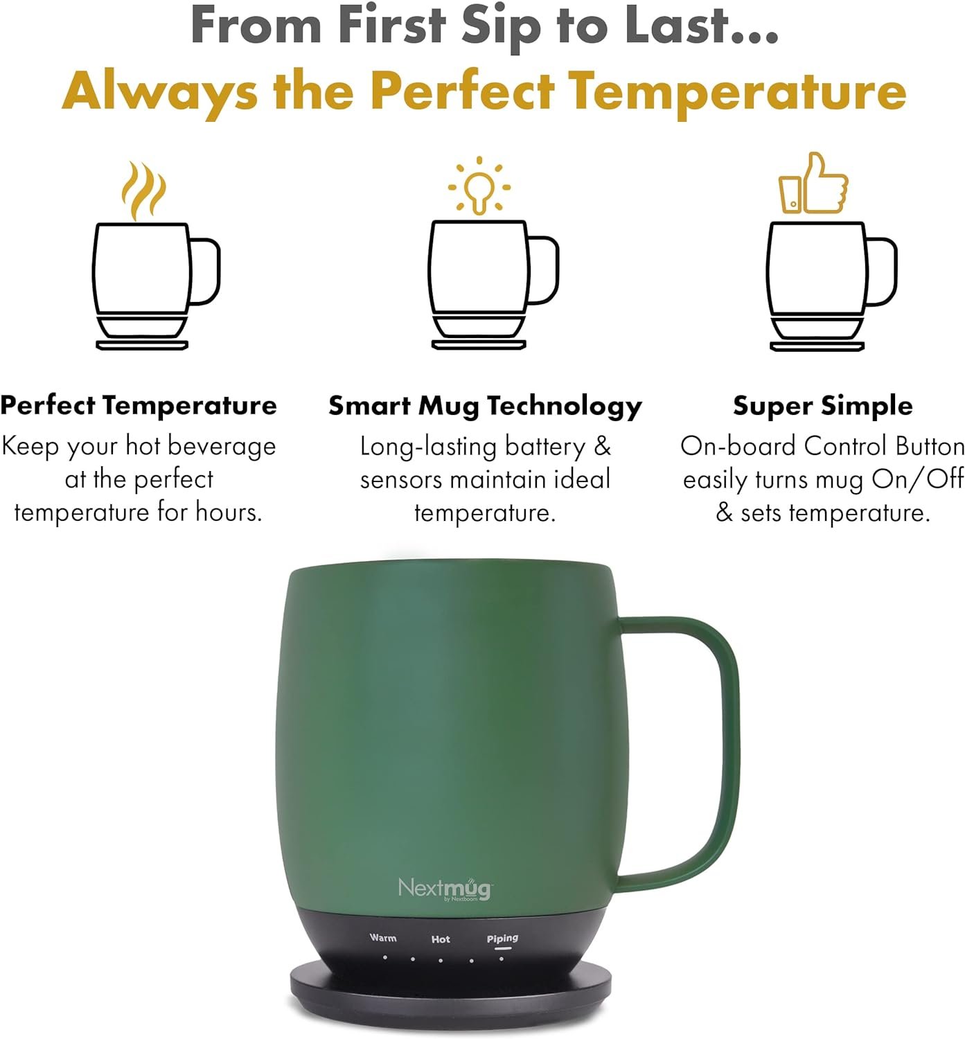 Nextmug – Temperature-Controlled, Self-Heating Coffee Mug (Sage – 14 oz.)
