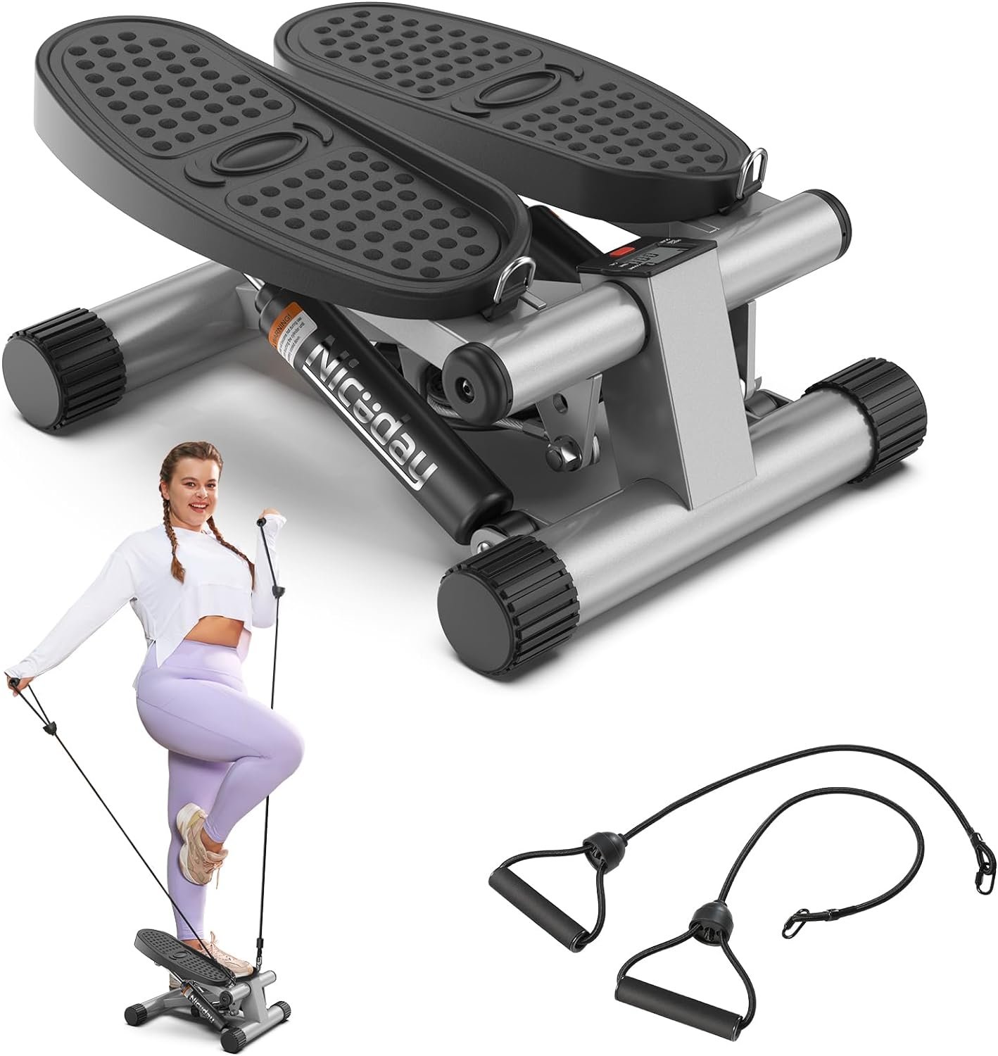 Niceday Steppers for Exercise, Stair Stepper with Resistance Bands, Mini Stepper with 300LBS Loading Capacity, Hydraulic Fitness Stepper with LCD Monitor