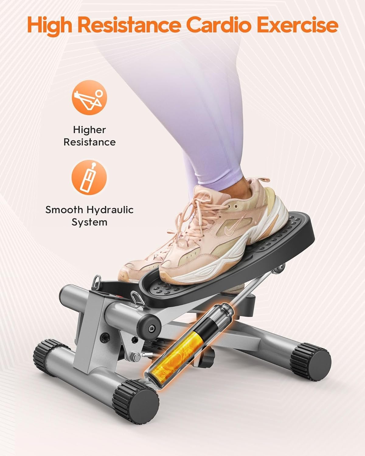 【Dramatically Fat Burning】Niceday stepper’s resistance comes from the smoother & quieter hydraulic system. The dual hydraulic cylinder design ensures stability while dramatically increasing resistance and fat-burning volume.