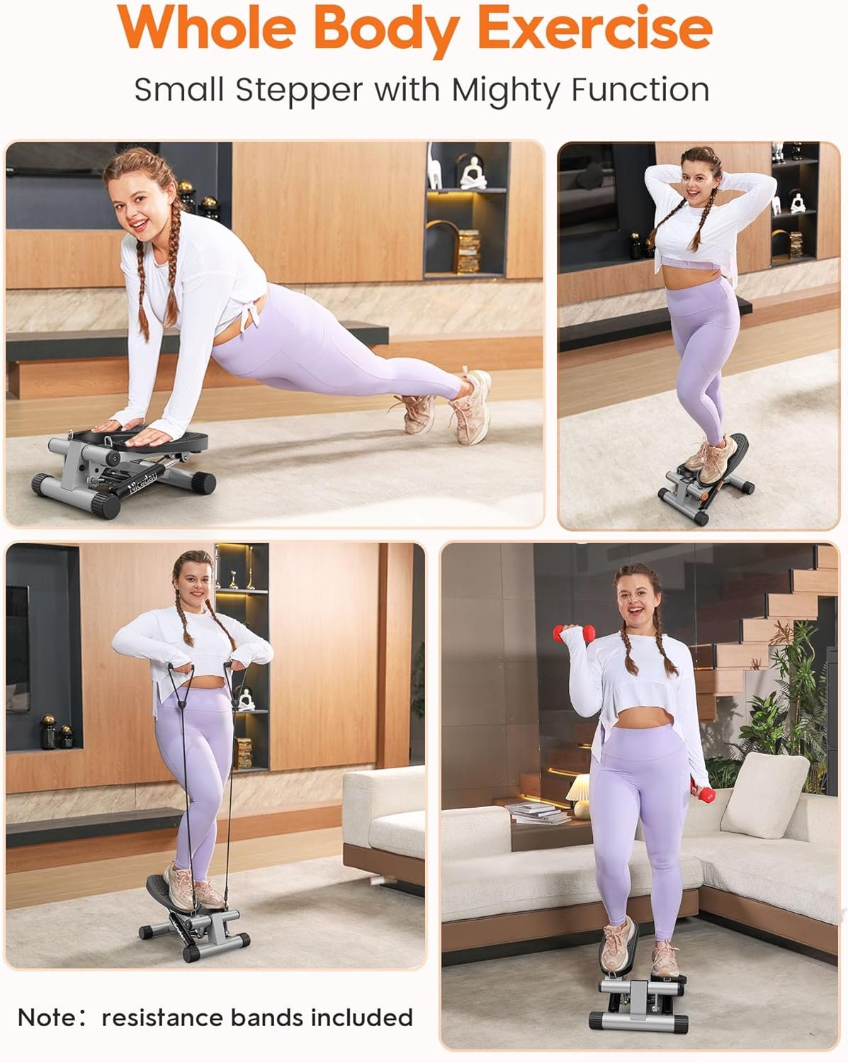 【Whole Body Exercise】The Niceday Stepper contains two high elastic resistance bands. You can perform upper body exercises while stepping to achieve the goal of the whole body burning fat and sculpting.