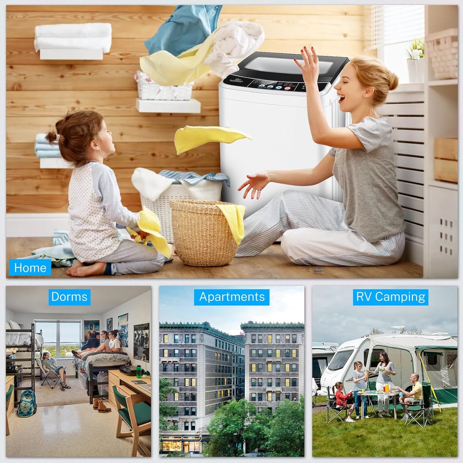 šćEasy to Operateć This full-automatic portable washing machine can quickly wash and spin dry clothes to meet all your laundry needs. There are 10 laundry programs and 8 water level selections on the control panel, no complicated steps required, one-touch operation, all functions are easy to use. The LED screen can also show the washing time clearly so that you can use the time reasonably.