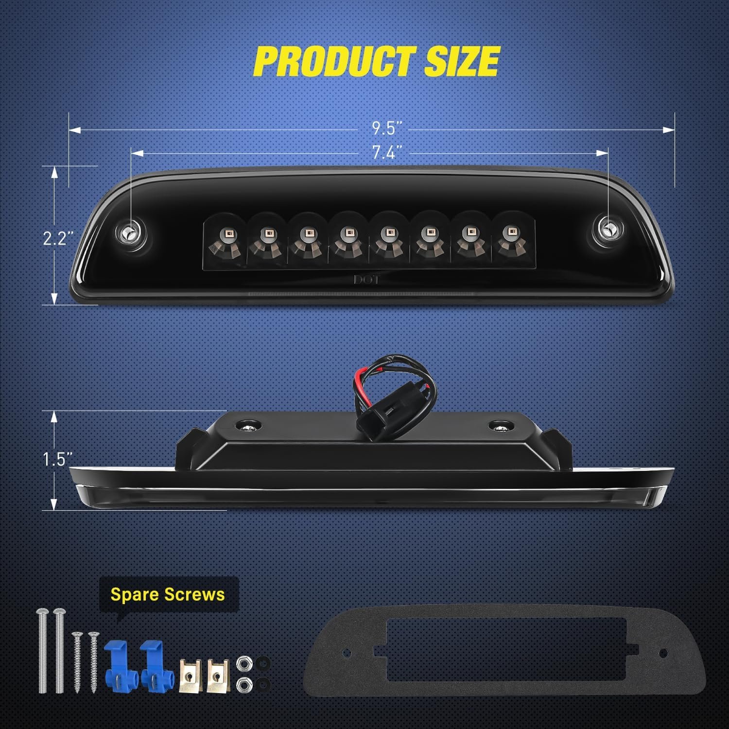 【IP67 Waterproof】 This third brake light comes with a high-density foam mounted back, perfectly sealed around, preventing water, snow or heavy rain from leaking in, make sure this third brake light will work perfectly in all weather