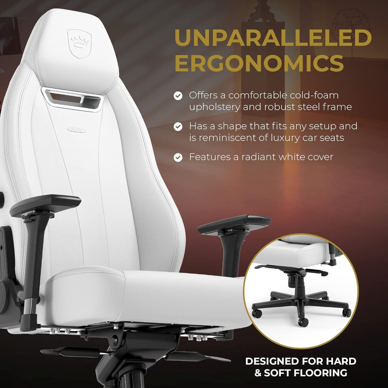 NOBLECHAIRS’S PROMISE: noblechairs gaming chairs offer unparalleled build quality, classy designs, and refined comfort for raid bosses and home offices alike. Informed by the design of high-class car seats, noblechairs combines the latest ergonomics and premium materials into sophisticated chairs.