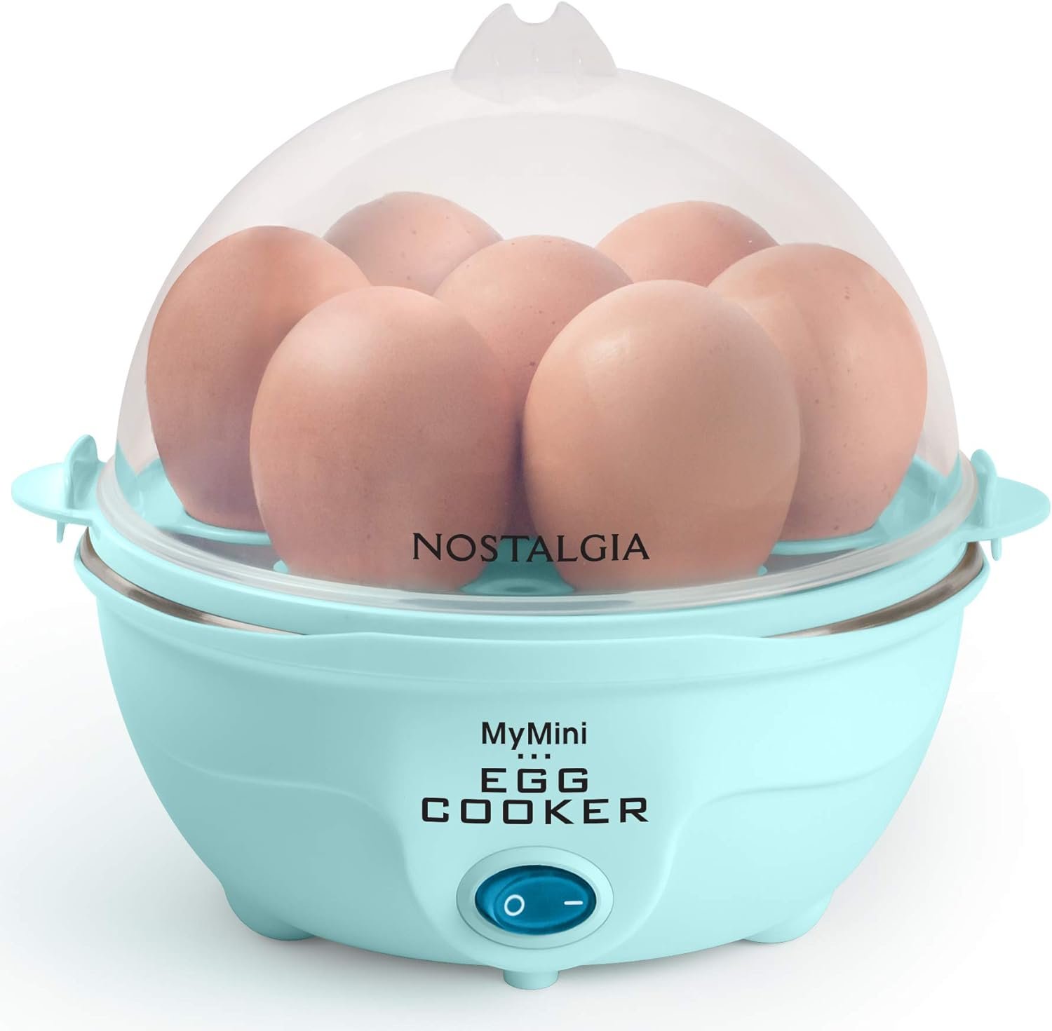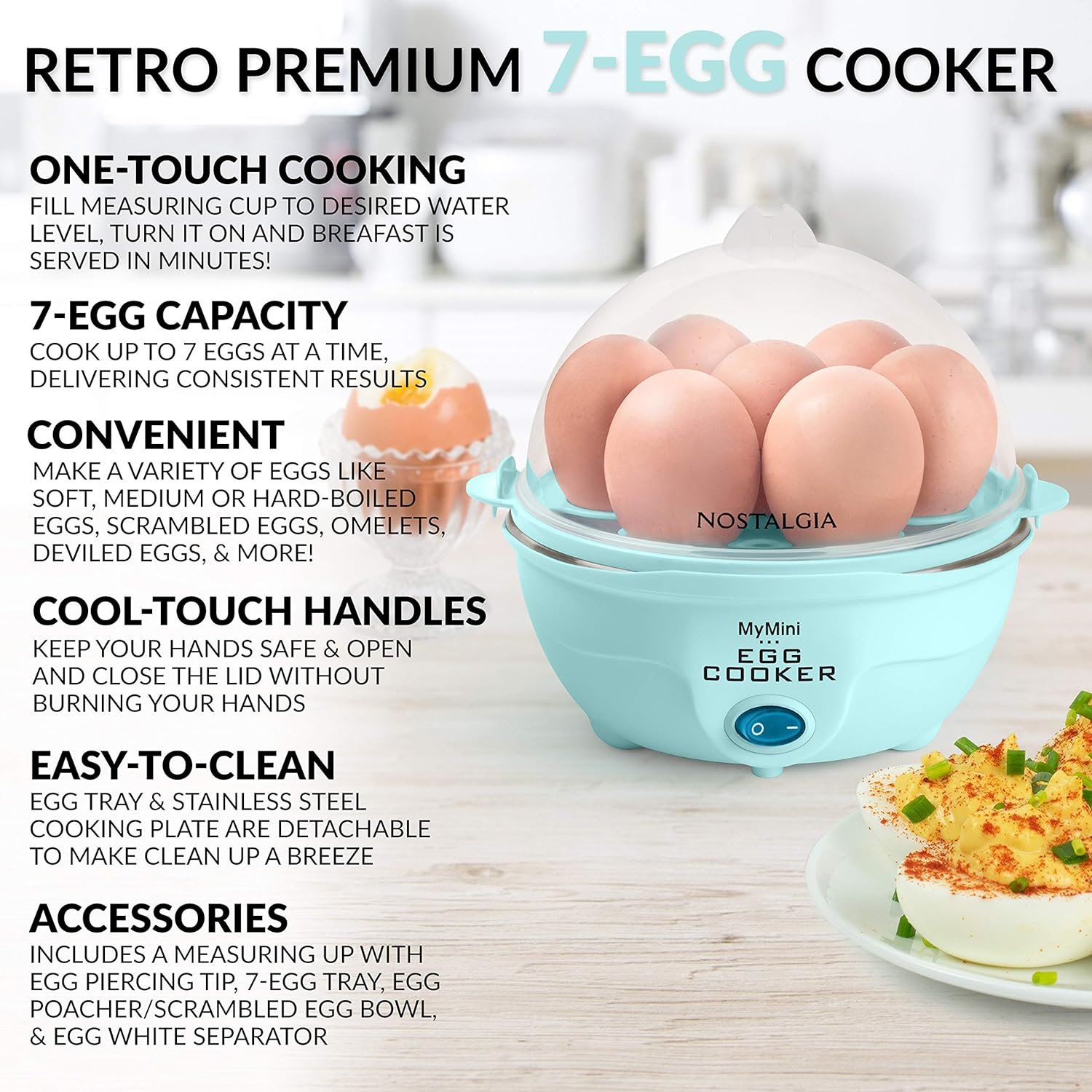 Egg cooker with 7-egg capacity makes up to 7 soft, medium or hard-boiled eggs at a time.