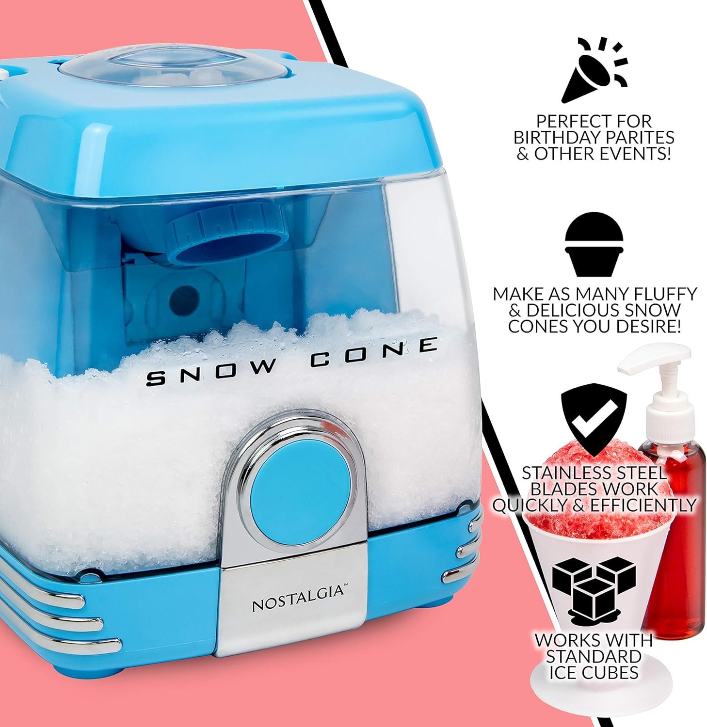 NOSTALGIA SNOW CONE KITS: Works perfectly with all Nostalgia snow cone kits – try the Snow Cone Kit, Snow Cone Syrups, or the Straws and Cups.