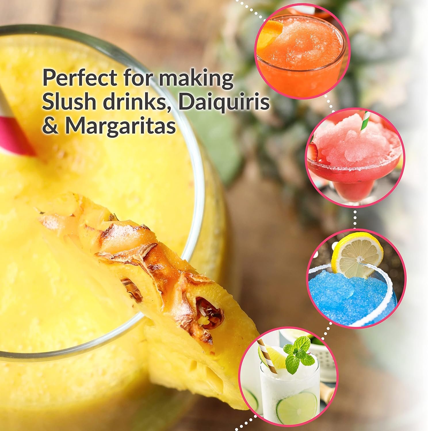 POWERFUL MOTOR: Make sure no ice chunks make their way into your drink. This machine is equipped with a powerful motor that shaves ice perfectly smooth for margaritas, daiquiris, slushies, and any other iced beverage