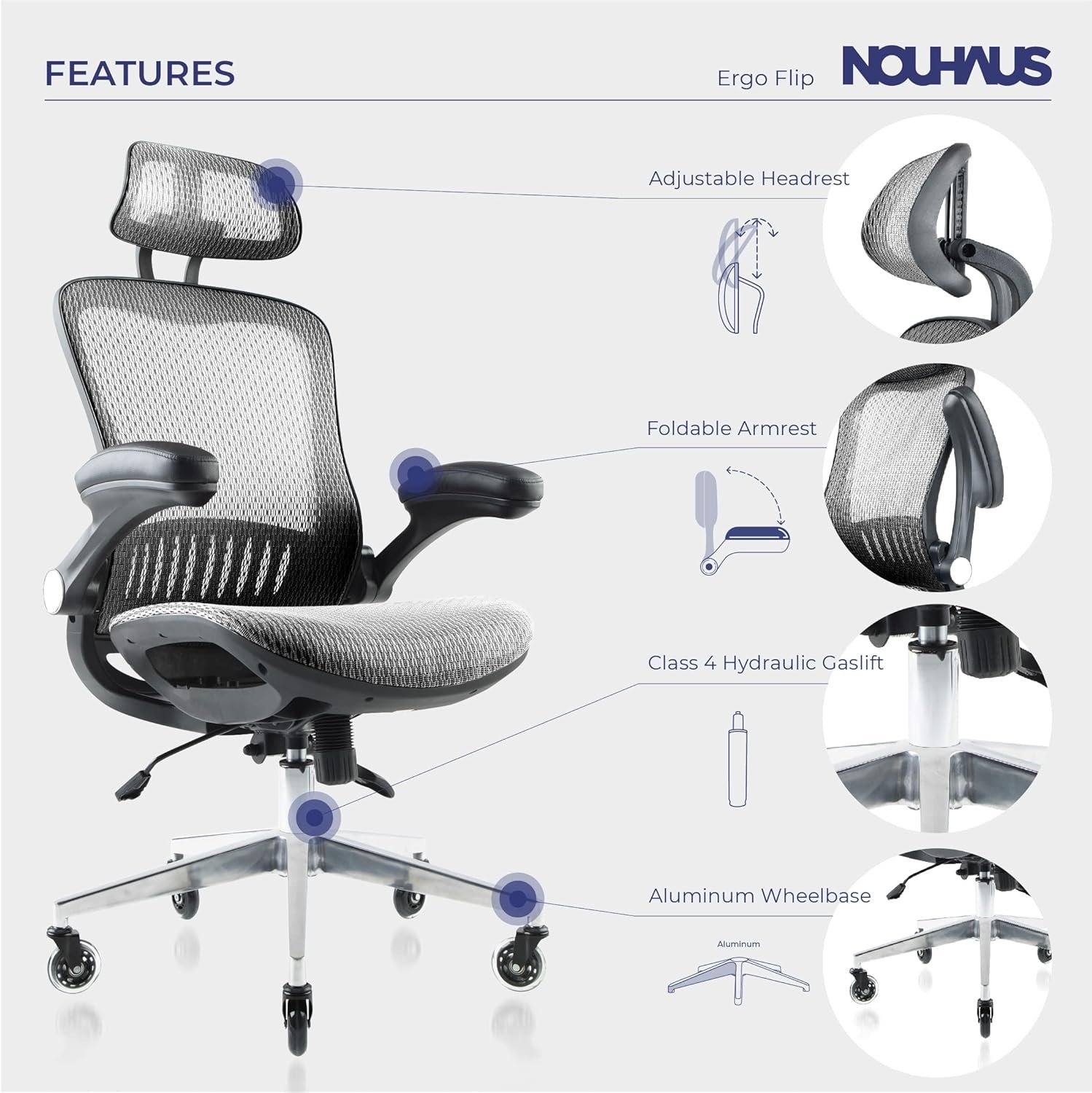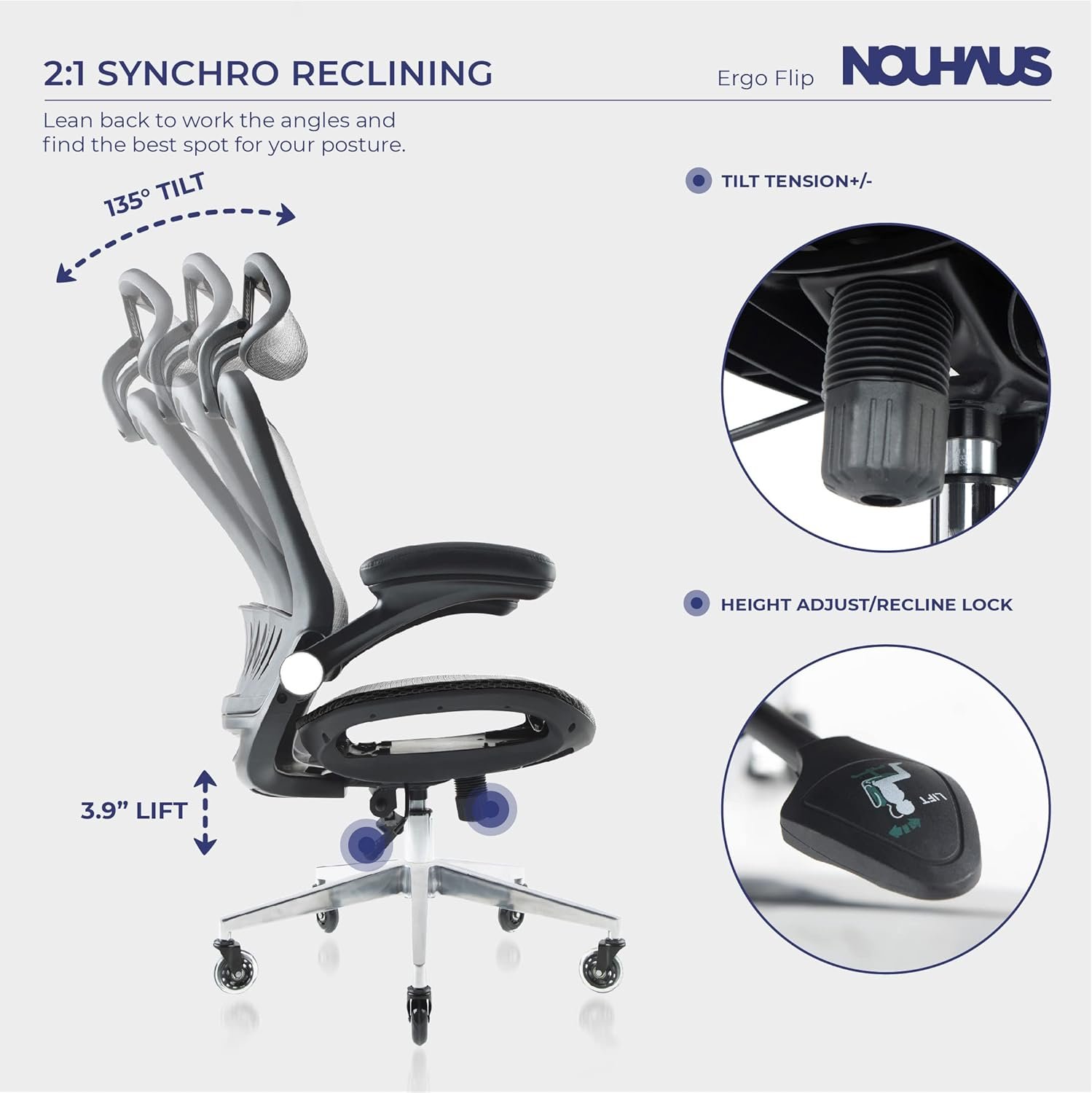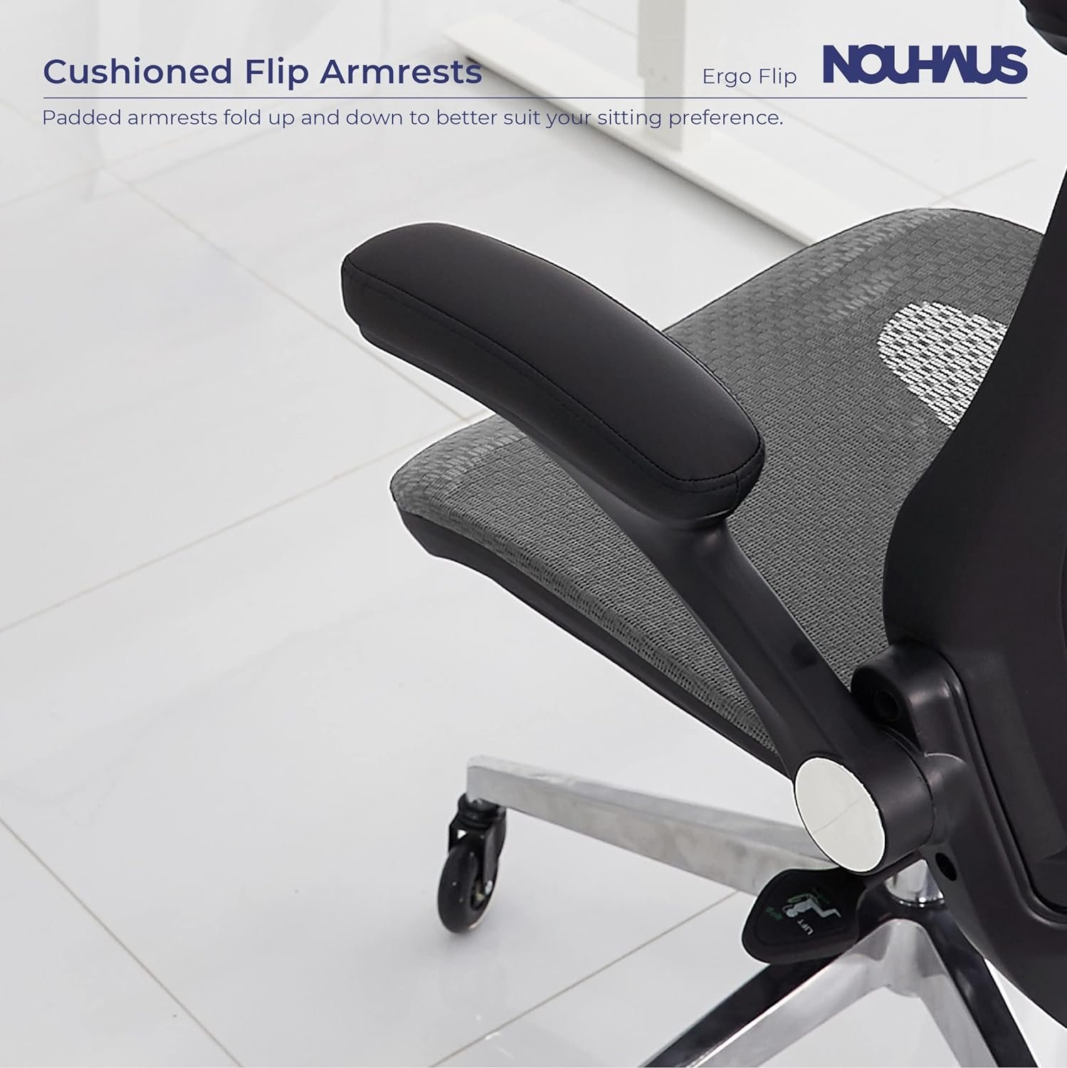 YOUR WORKDAY JUST GOT A WHOLE LOT EASIER: So if you’re ready for the most ergonomic office chair, one that is comfy on your body, AND naturally the most comfortable for arm placement (not to mention those luxury rollerblade wheels), then you’re ready for The Ergo Flip by Nouhaus.
