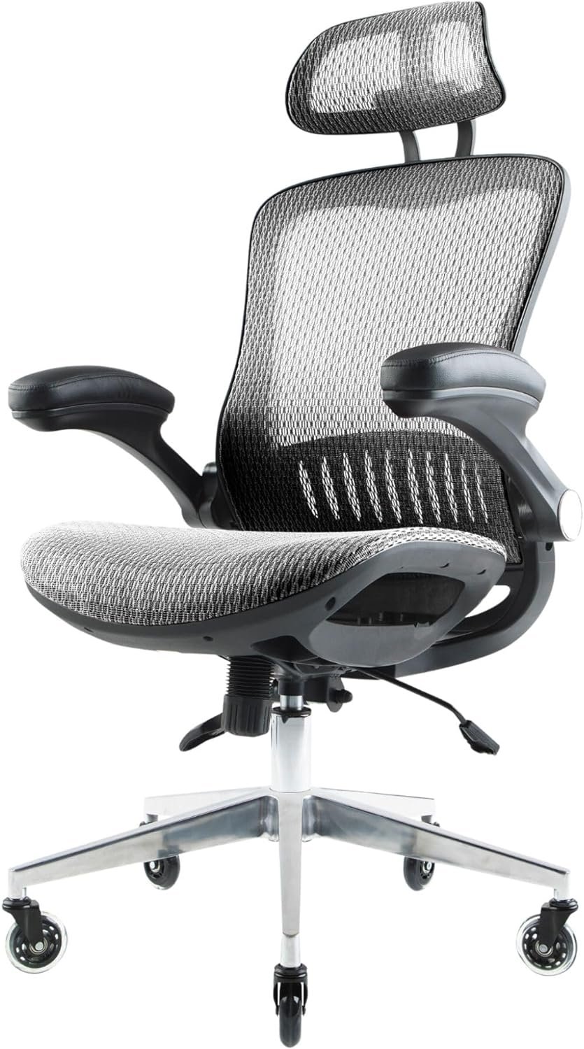 SOFT, BREATHABLE MESH: No one likes sweating in their chair, but The Ergo Flip is made with breathable ElastoMesh Fabric for optimal airflow and comfort – no wirey mesh marks! And here’s what else is comfortable – The Ergo Flip features a full length backrest, contoured neck / headrest, and ergonomically curved lumbar so you can sit for longer without any discomfort.