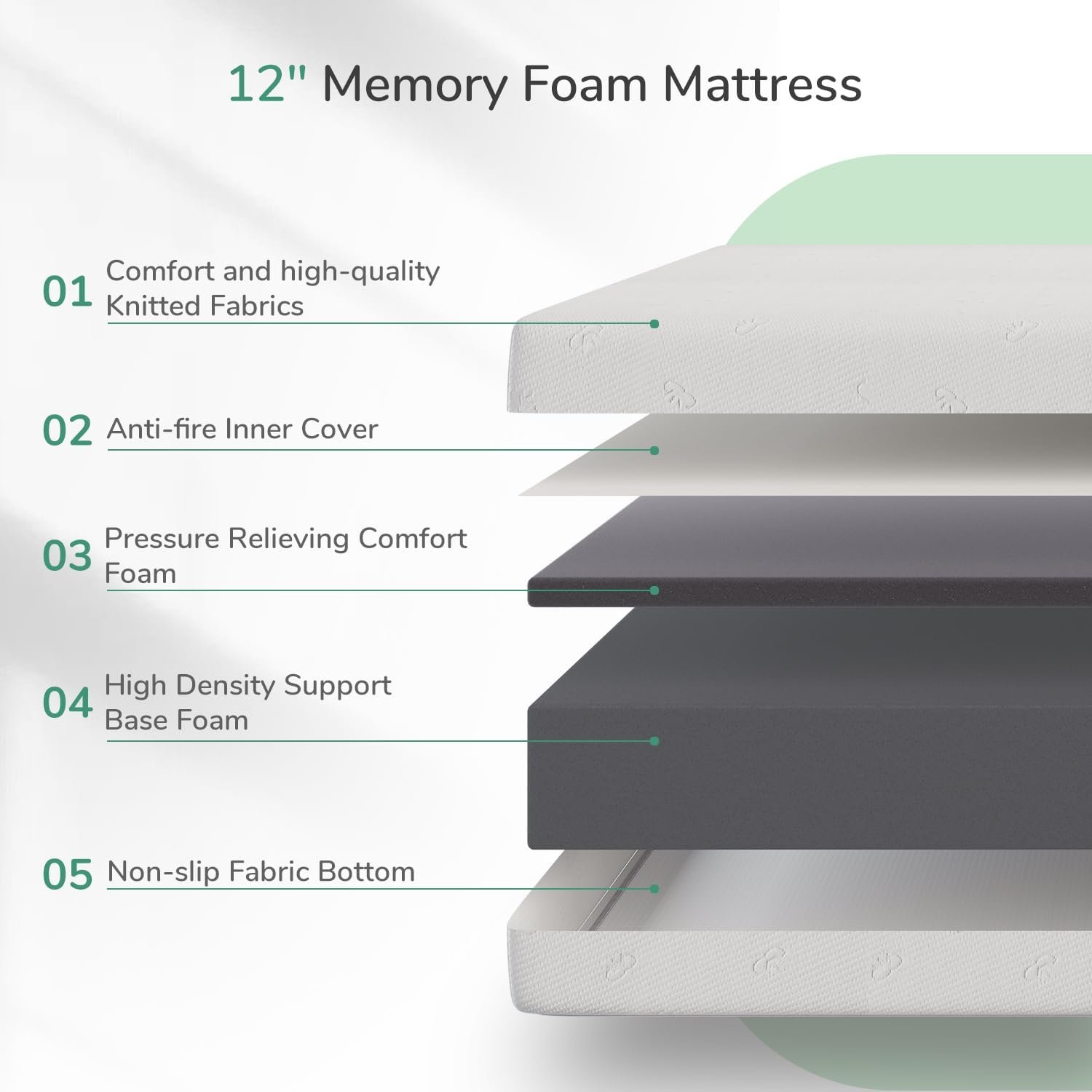 COOL & COMFORTABLE SLEEP – The full memory foam mattress cover is made of high-quality knitted fabrics, providing superior comfort and durability. Knitted fabrics excel in great breathability and are soft-to-touch with enhanced air circulation for a cooler night’s sleep. Sleepers who typically overheat while sleeping will benefit most from this mattress.