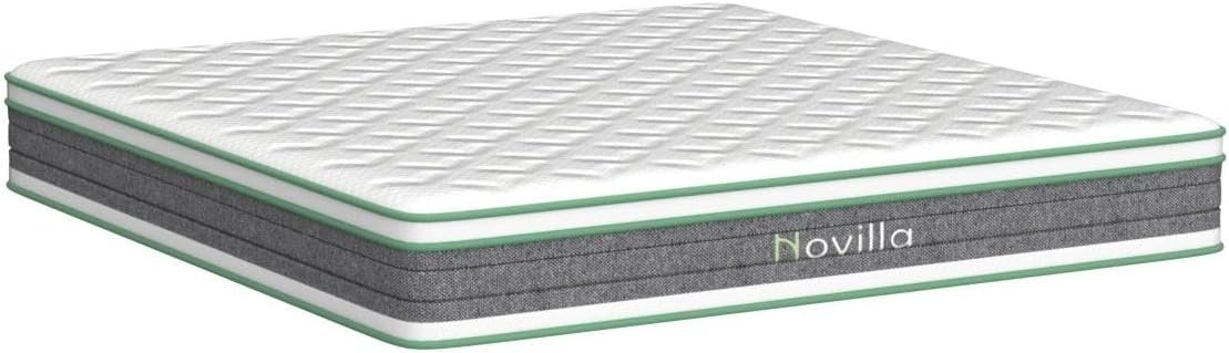 HYBRID DESIGN FOR UNDISTURBED SLEEP: The pocket coils move independently, and the foam layers help absorb movement to reduce motion transfer. Novilla queen size mattress provides a quiet and peaceful sleep experience. The 12 inch queen mattress has enhanced edge support, so that you’ll not slip off the hybrid foam mattress when sleeping on the edge