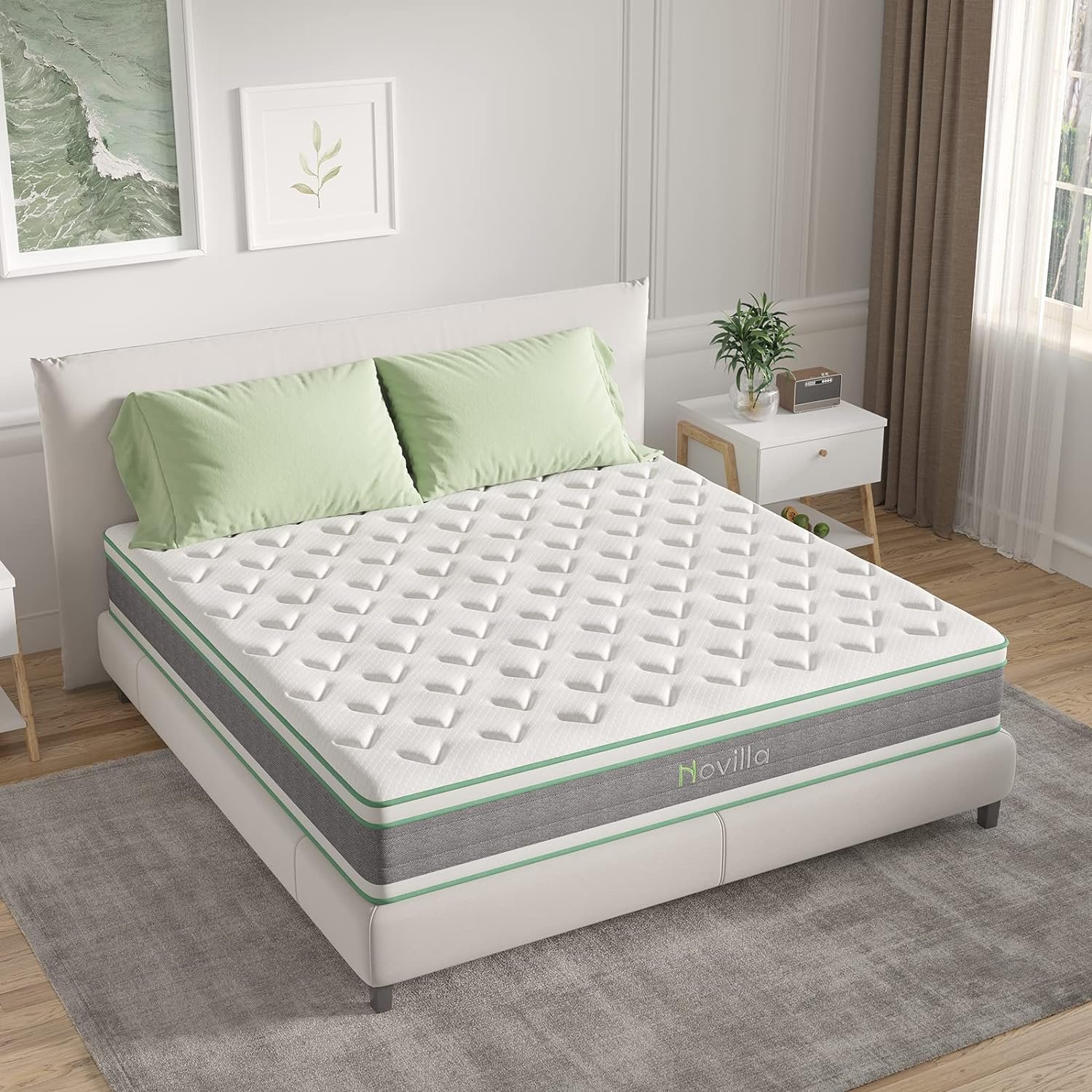 Novilla has been working on better bedding to help our customers sleep well and love well. This mattress has a hybrid design that provides a balance of comfort and support. It fits sleepers who prefer a medium-firm mattress.