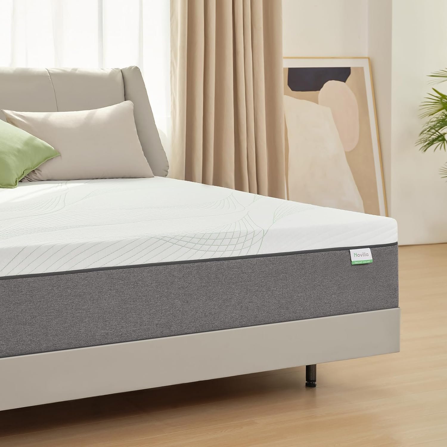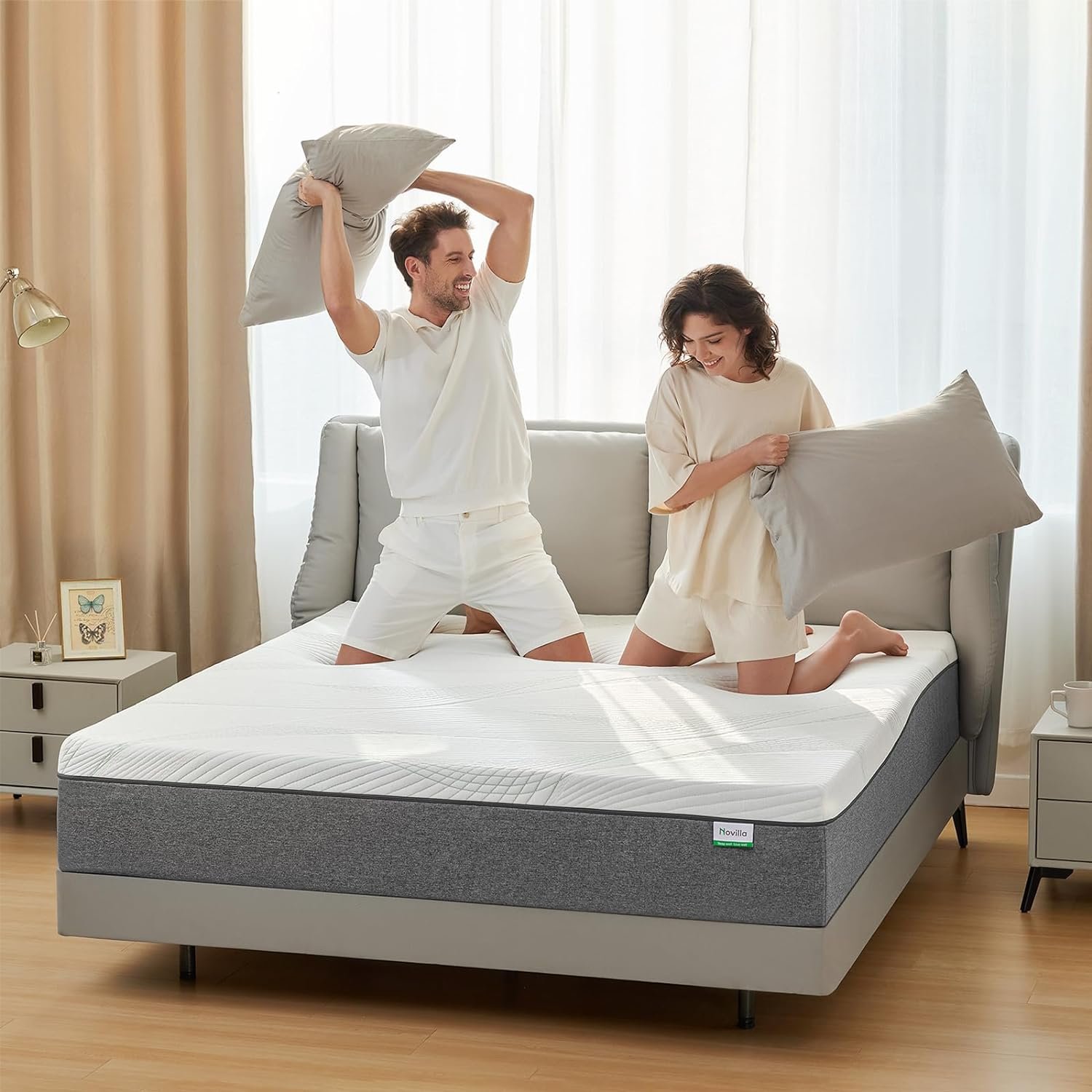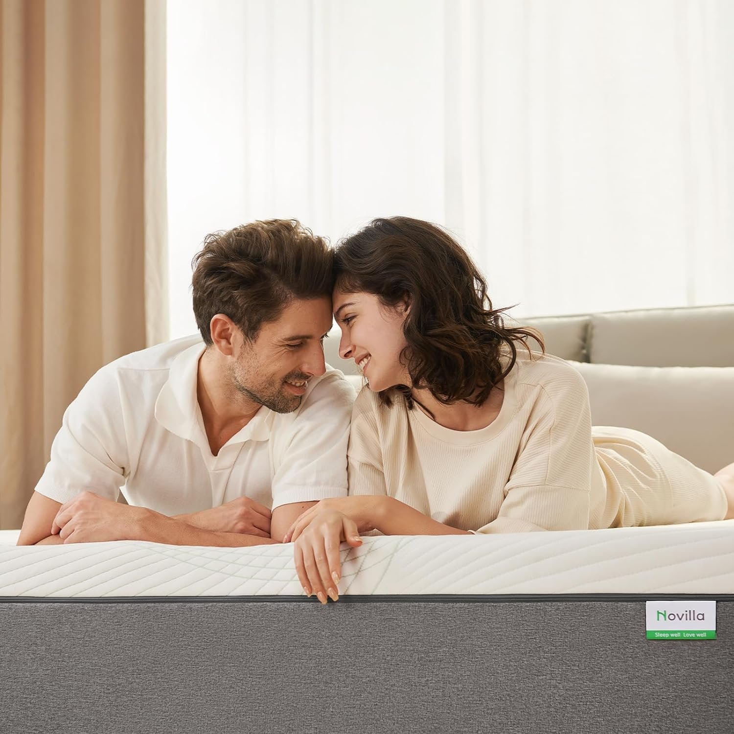 Wake Up Pain-Free: The memory foam mattress distributes your body weight evenly, reducing pressure on key regions such as shoulders, hips, and lower back. The Novilla queen mattress relieves common sleep-related aches and pains. You can enjoy pain-relief nights’ sleep on a queen bed mattress.