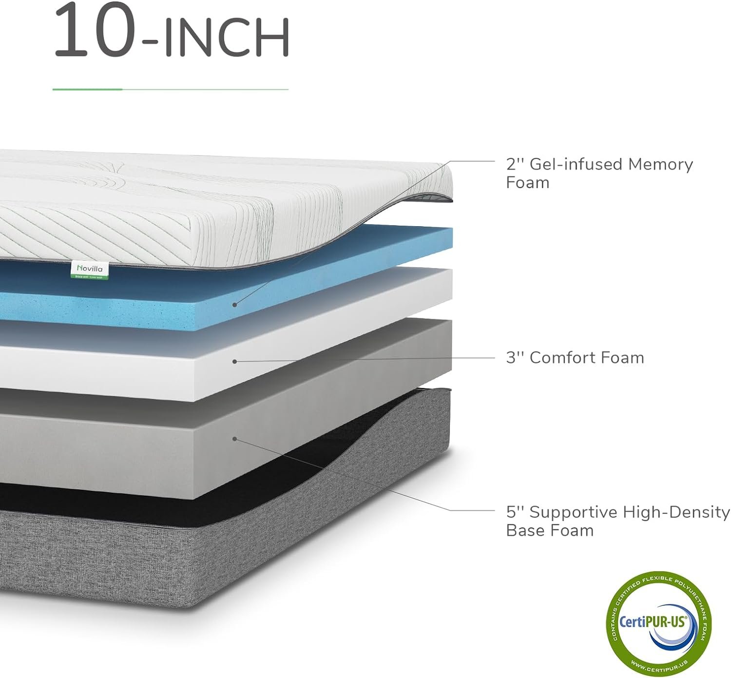 Purchase with Confidence & 10-Year Warranty: Indulge in the ultimate comfort with our CertiPUR-US certified queen size mattress 10 inch, which features high-quality foam and a wrinkle-resistant polyester cover that provides superior comfort and durability. Backed by a 10-year warranty, you can sleep on Novilla mattress with confidence.