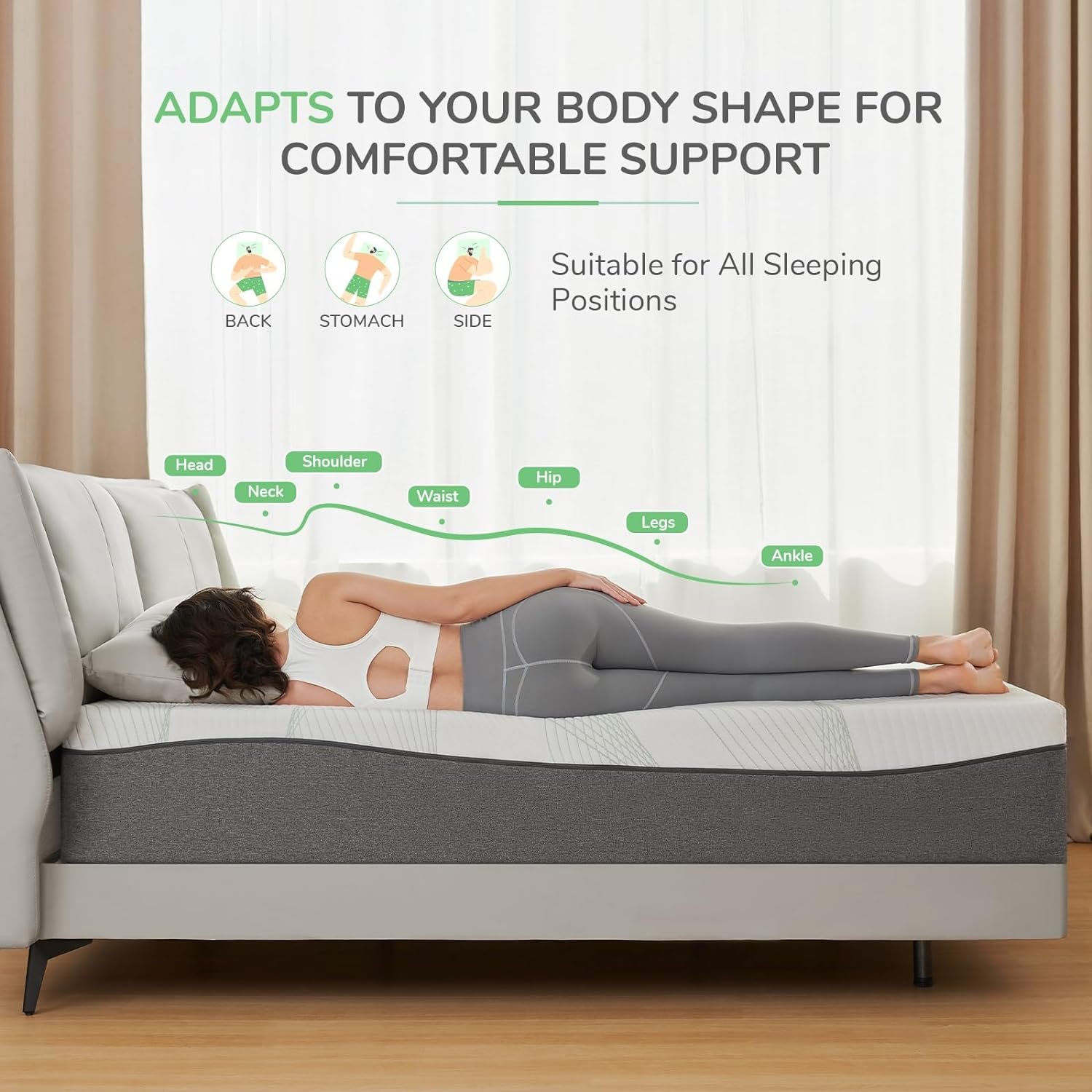Luxurious Comfort and Customized Support: The memory foam mattresses queen offers balanced comfort through a combination of foam layers with different properties. The high-density foam conforms to your body curve by responding instantly to your body shape, to gently contour and provide pressure relief.